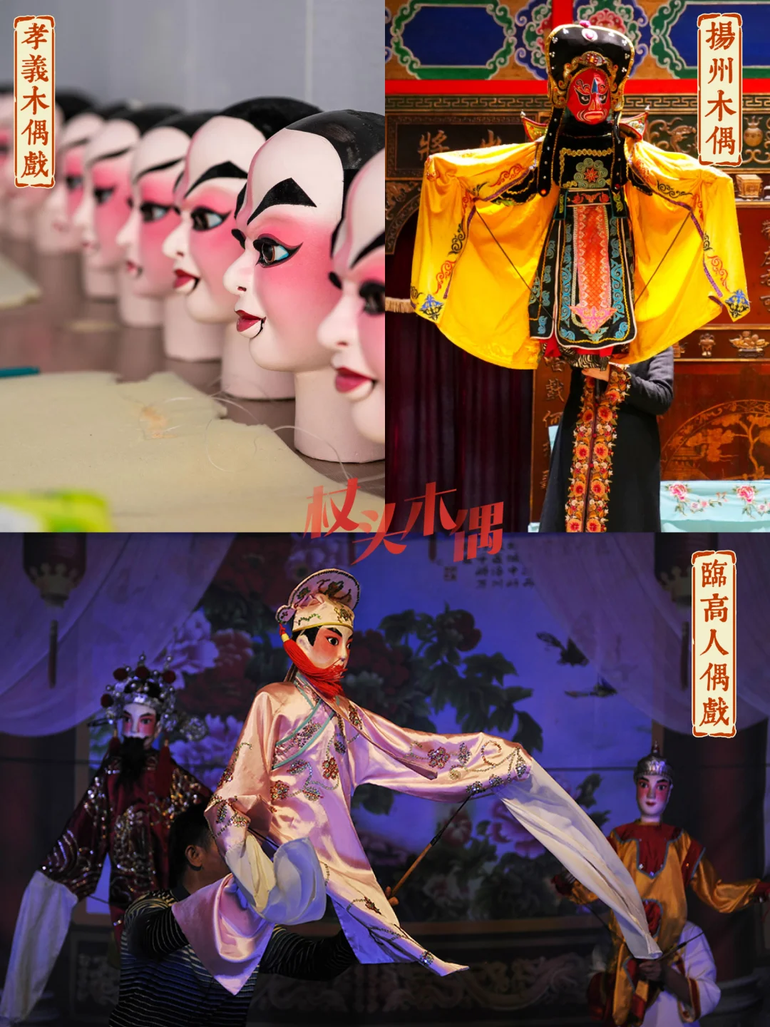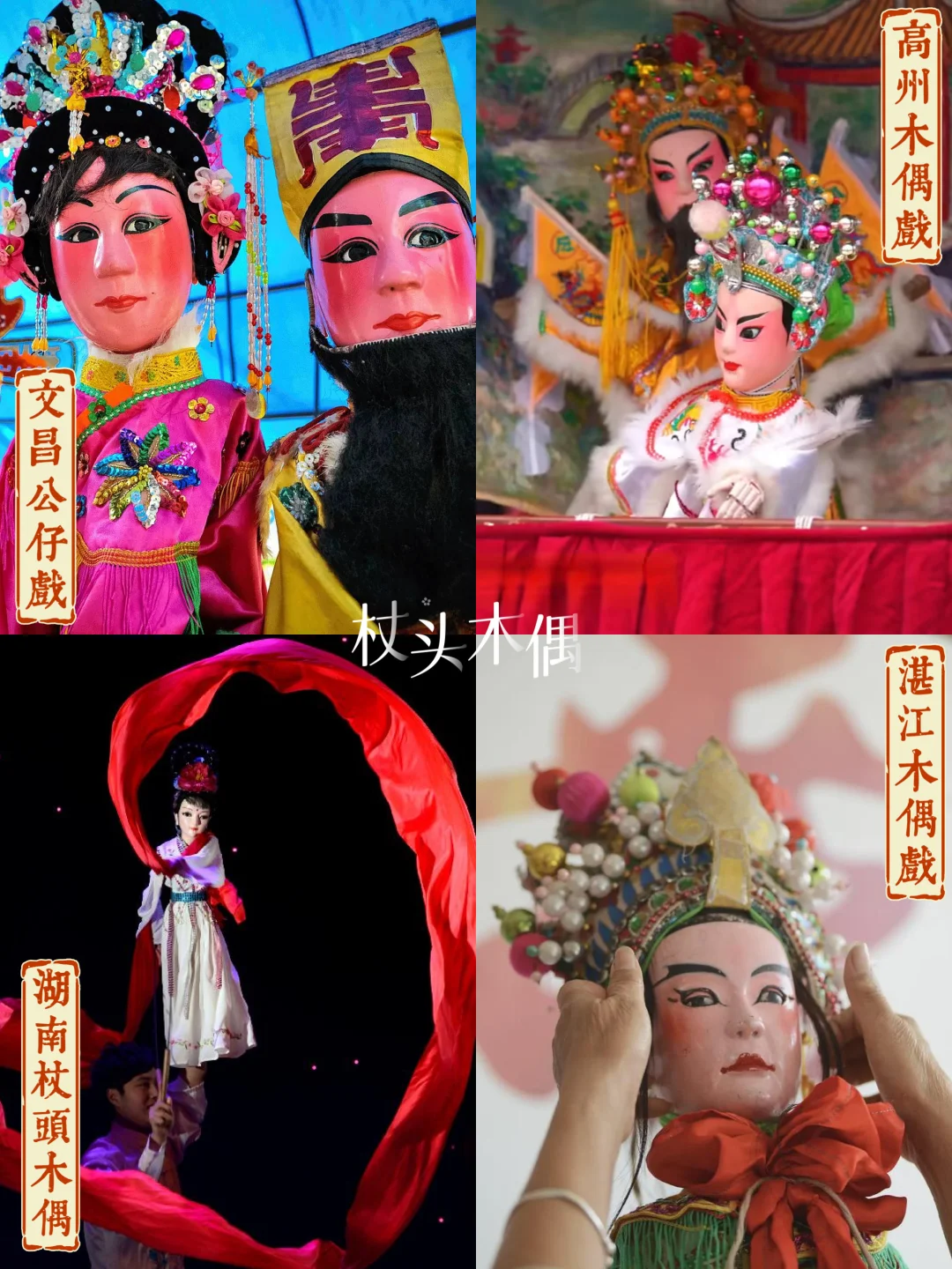 🔸如今在非遗名单中,杖头木偶占比很大。源自宋代的孝义木偶简洁粗犷;扬州木偶细腻传神,临高人偶特色浓郁。