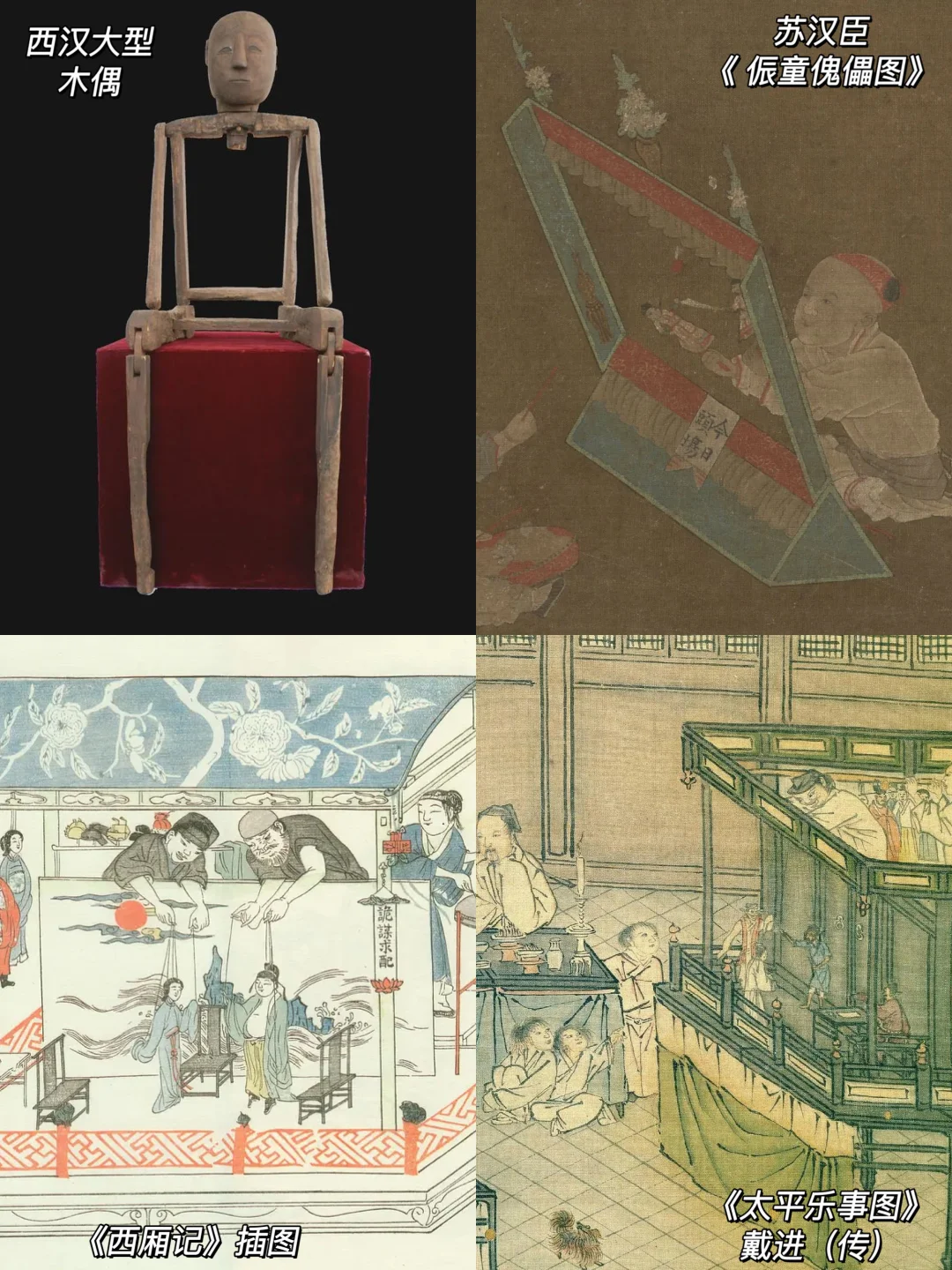 🔸傀儡,又名木偶,起初来源于墓葬中的俑,在春秋战国时代已成流行。