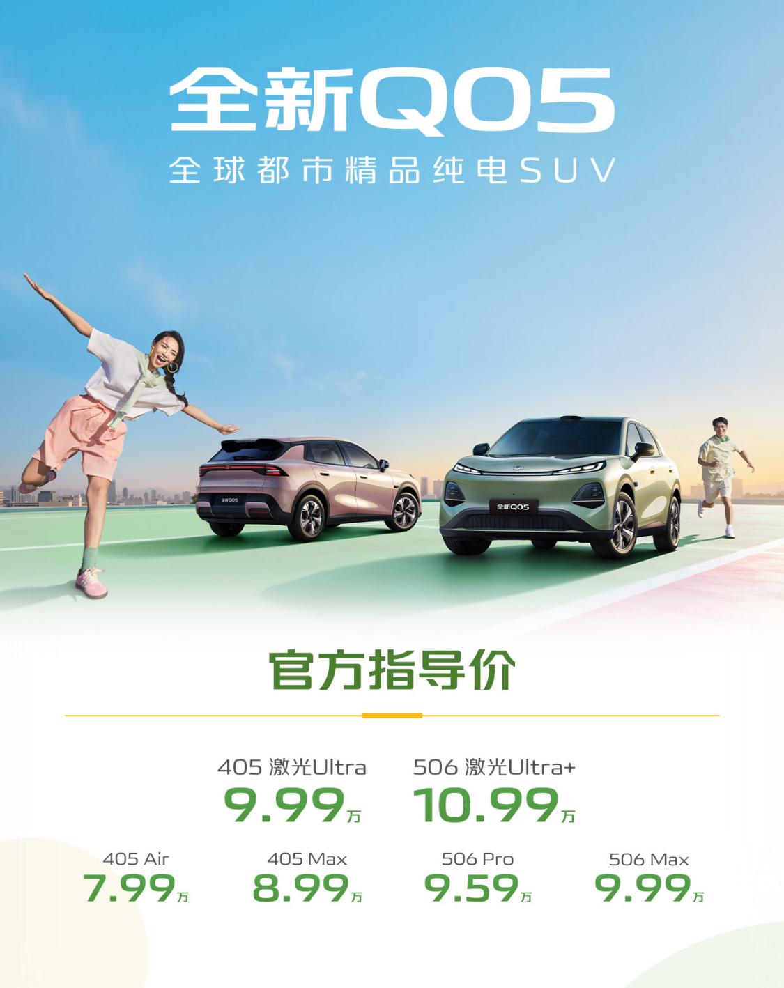 来了来了,掀桌子了! 启源Q05,7.99-10.99万。 我之前还查数据,得出结论,8.99万也是有竞争优势的。 这直接7.99万起。激光雷达版9.99万起。这让元UP瞬间不香了。[笑哭] 405km版7.99万起;506km版9.59万起。 喜欢吗?喜欢哪个配置的呢?