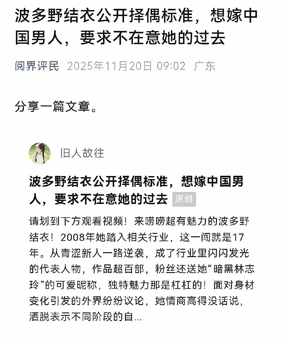 真的假的?波多老师居然想嫁给中国男人?!!![呲牙] 前提是不介意她的过去。这个,大伙儿怎么看啊?估计还是要点儿勇气吧?“铁帽子王”可不好当啊[捂脸][捂脸][捂脸] 人家好歹教导了中国一代人,可谓德艺双馨,还是祝愿老师能有个好归宿!欢迎来中国招亲![呲牙]