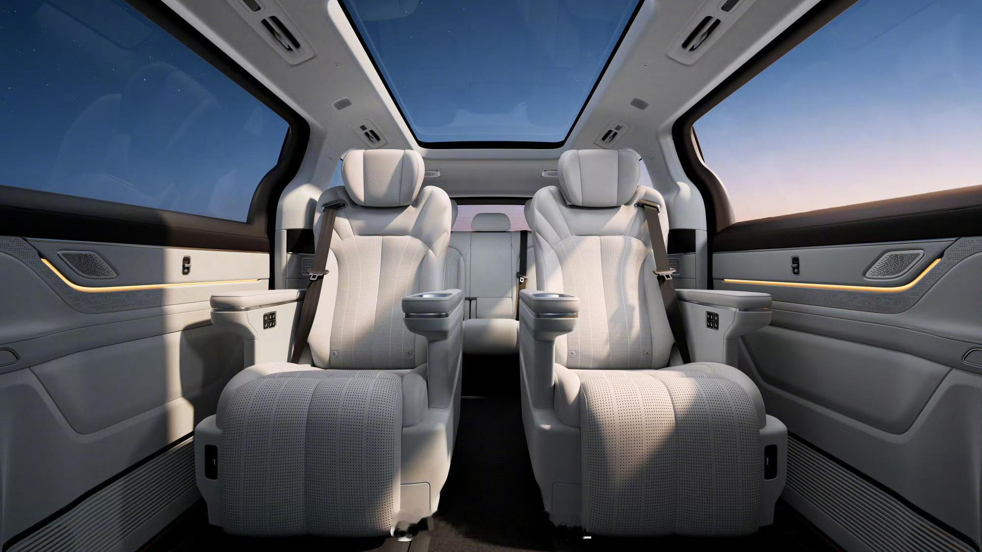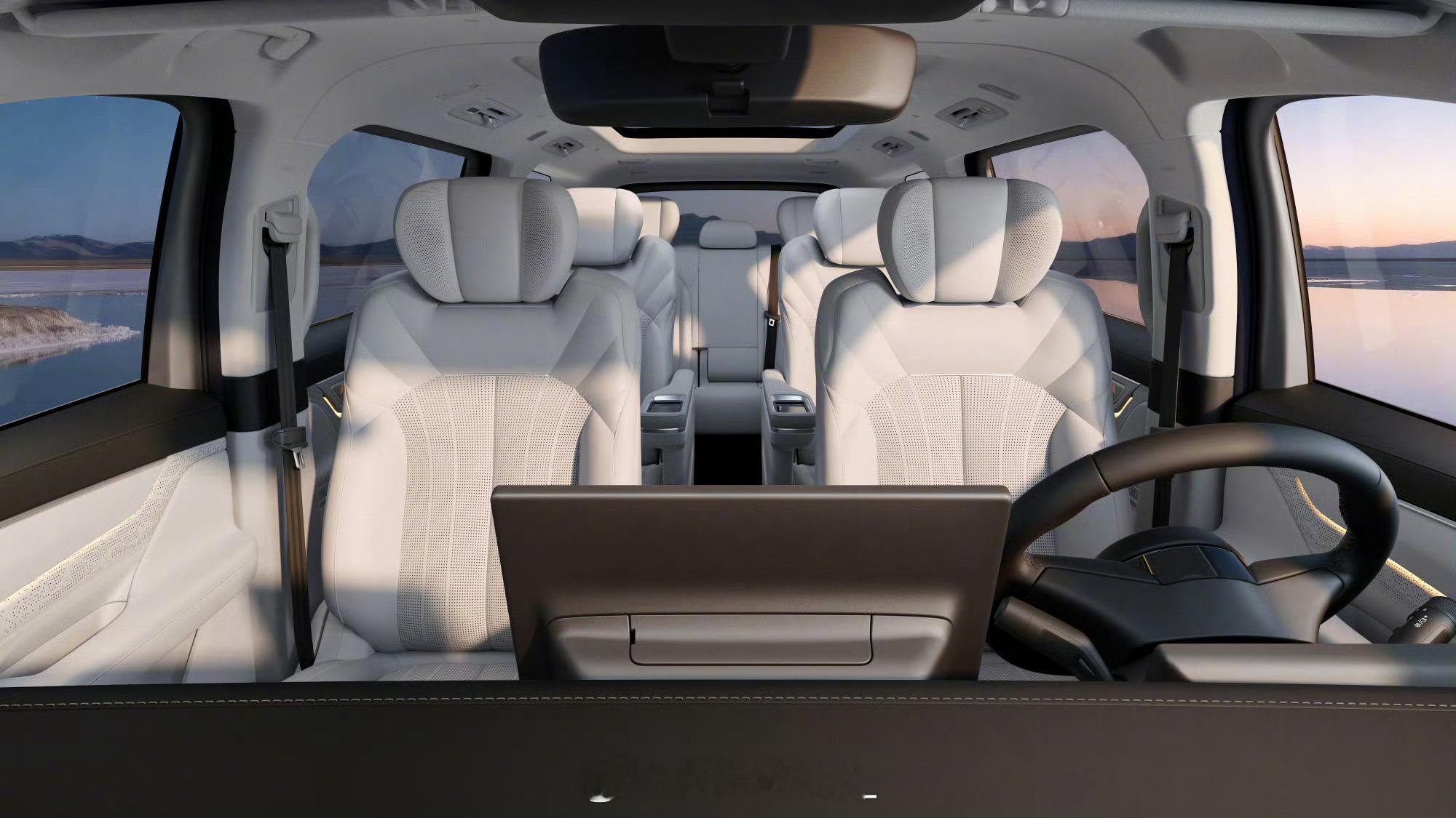 吉利银河V900亮相广州车展并全球首秀,外观方面由英国设计团队以“陆地游艇”为灵感,前脸采用“水韵金晖”波浪格栅+六层镀铬结构,搭配1990mm“星河长虹”贯穿灯带;车尾配备“天马展翼”超宽体飞翼尾灯。内饰中式“步步高升”三层仪表台布局,融入如意流风空调出风口、奇石听涛扬声器等东方元素,提供晨曦米/霞光橙双色主题。5360/1998/1940mm,轴距3200mm,得房率91.8%,1100L超大储物仓,7人满载也能塞下所有人的行李。搭载超级AI增程系统,智能双电机四驱,还有千里浩瀚 H5 辅助驾驶。