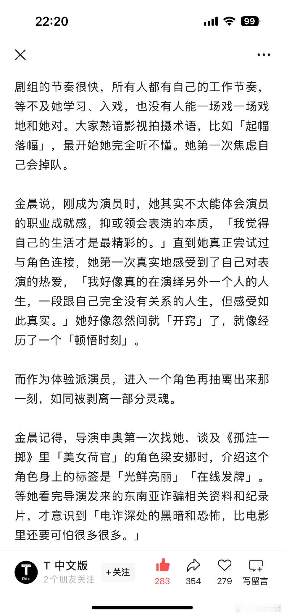 当本就很好的人遇到一群一同成长的朋友。 真的有被金晨T的文章感动,一路跌跌撞撞成就了她也完整了她。用心对待每一部作品,做人生的冒险家,这就是金晨最真实的模样。