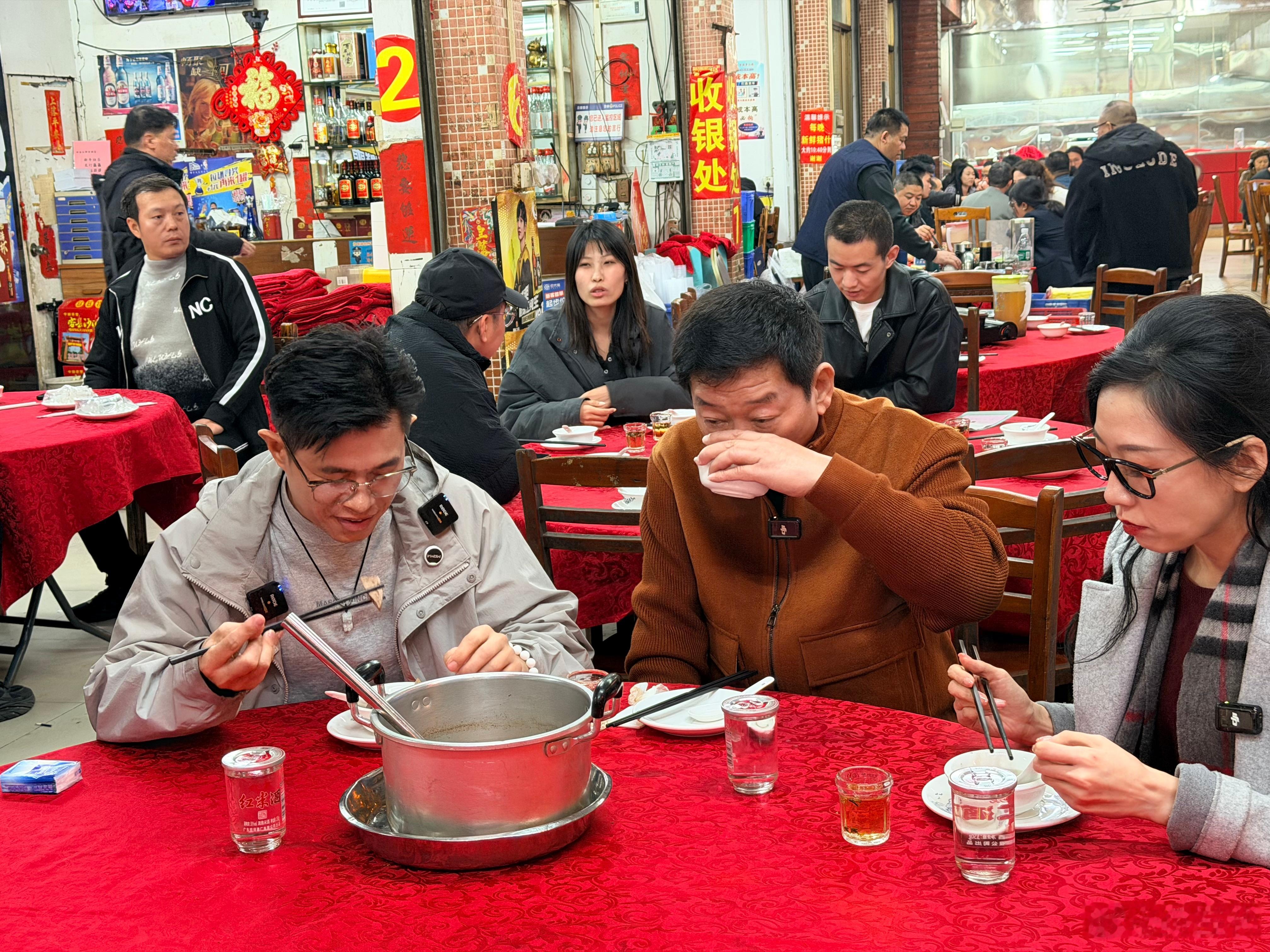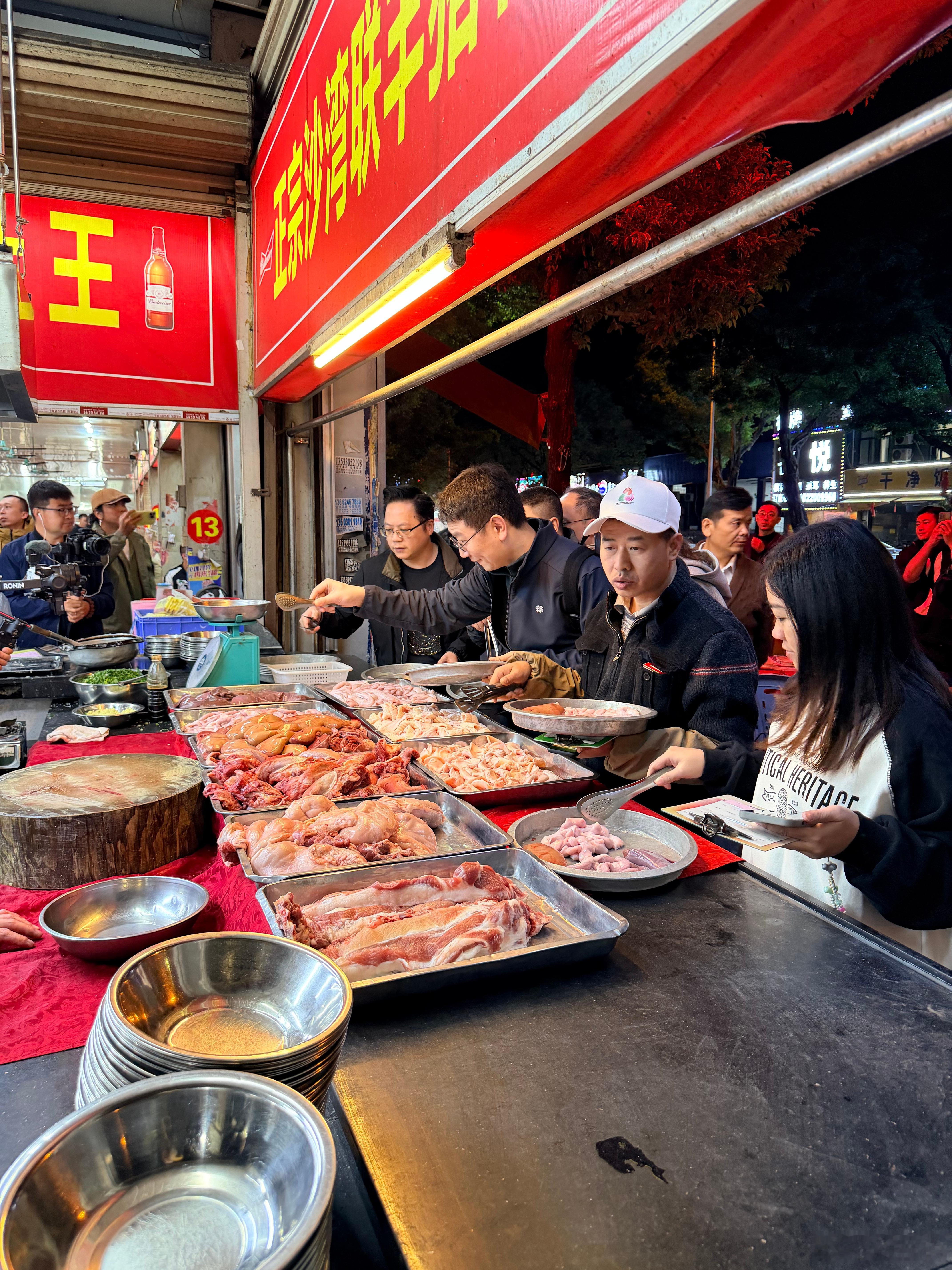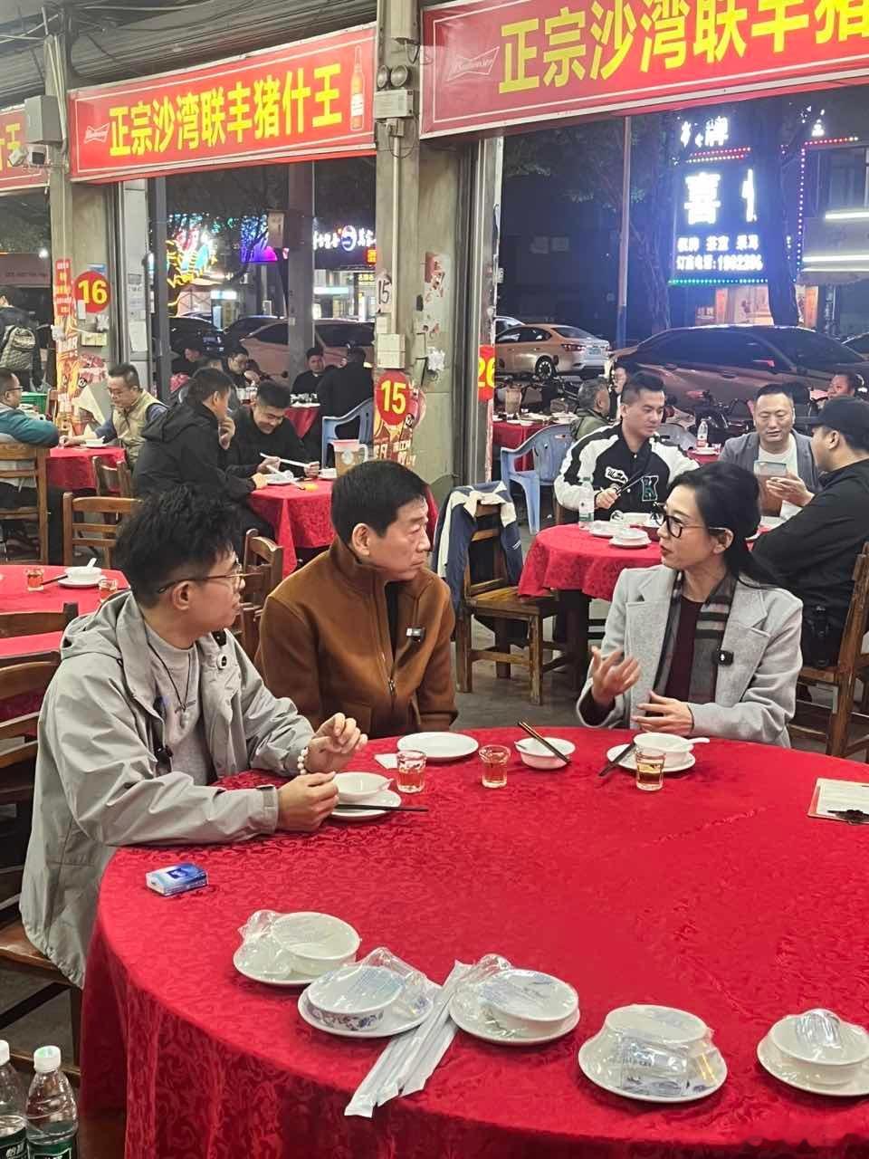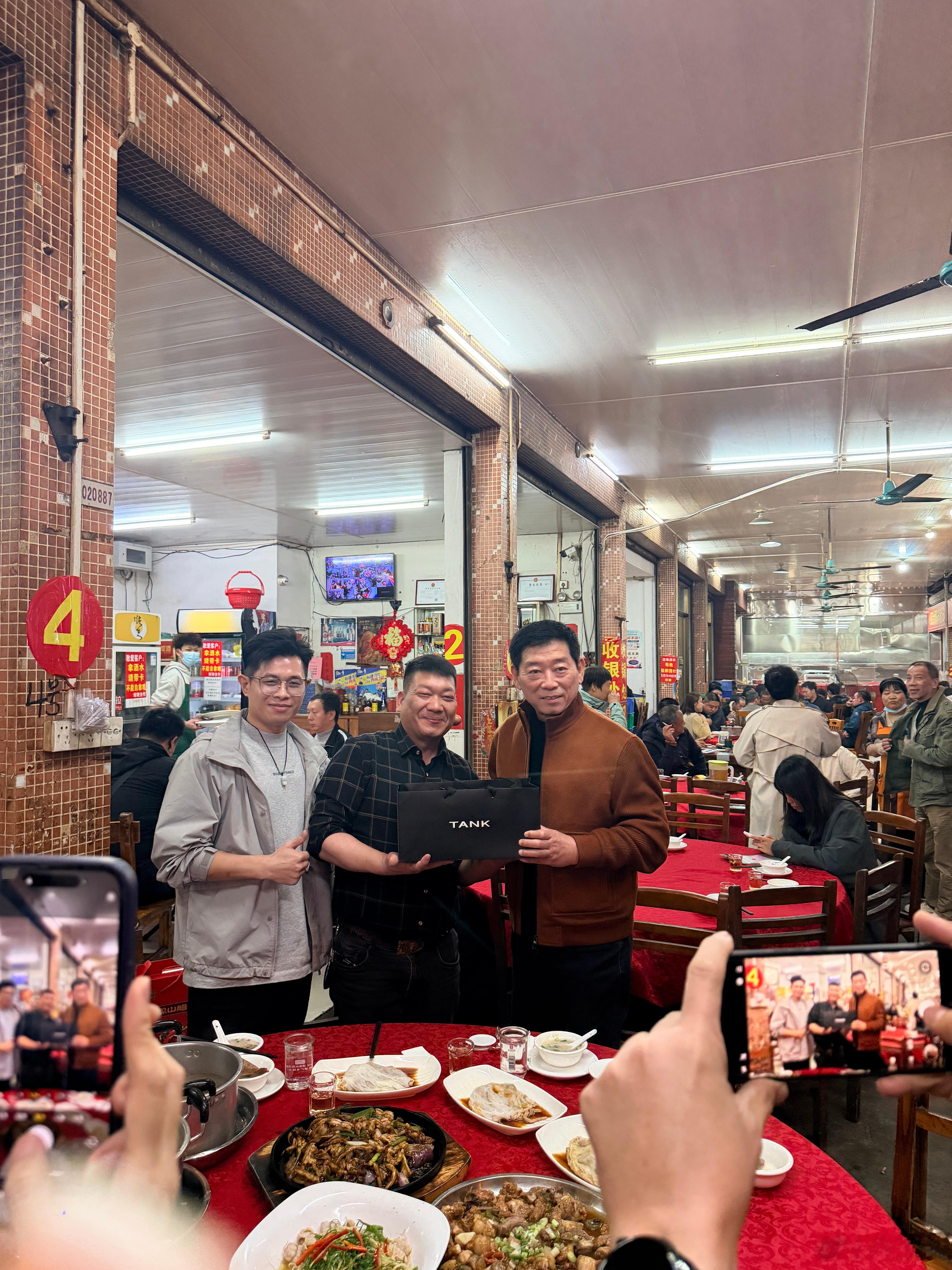 在广州车展的岭南文化体验活动中,魏建军深入市井粥铺,亲手挑选最新鲜的猪杂,一碗猪