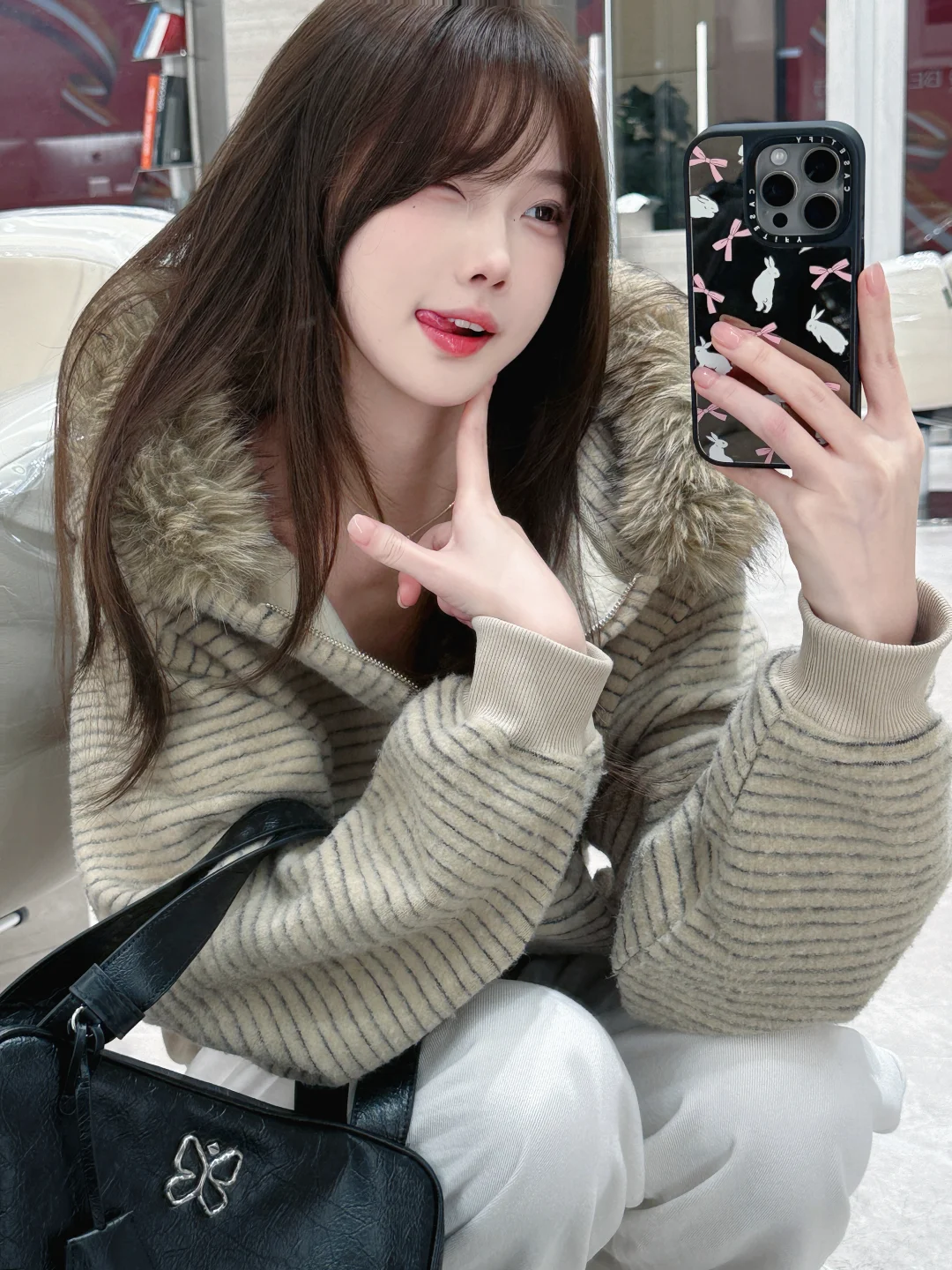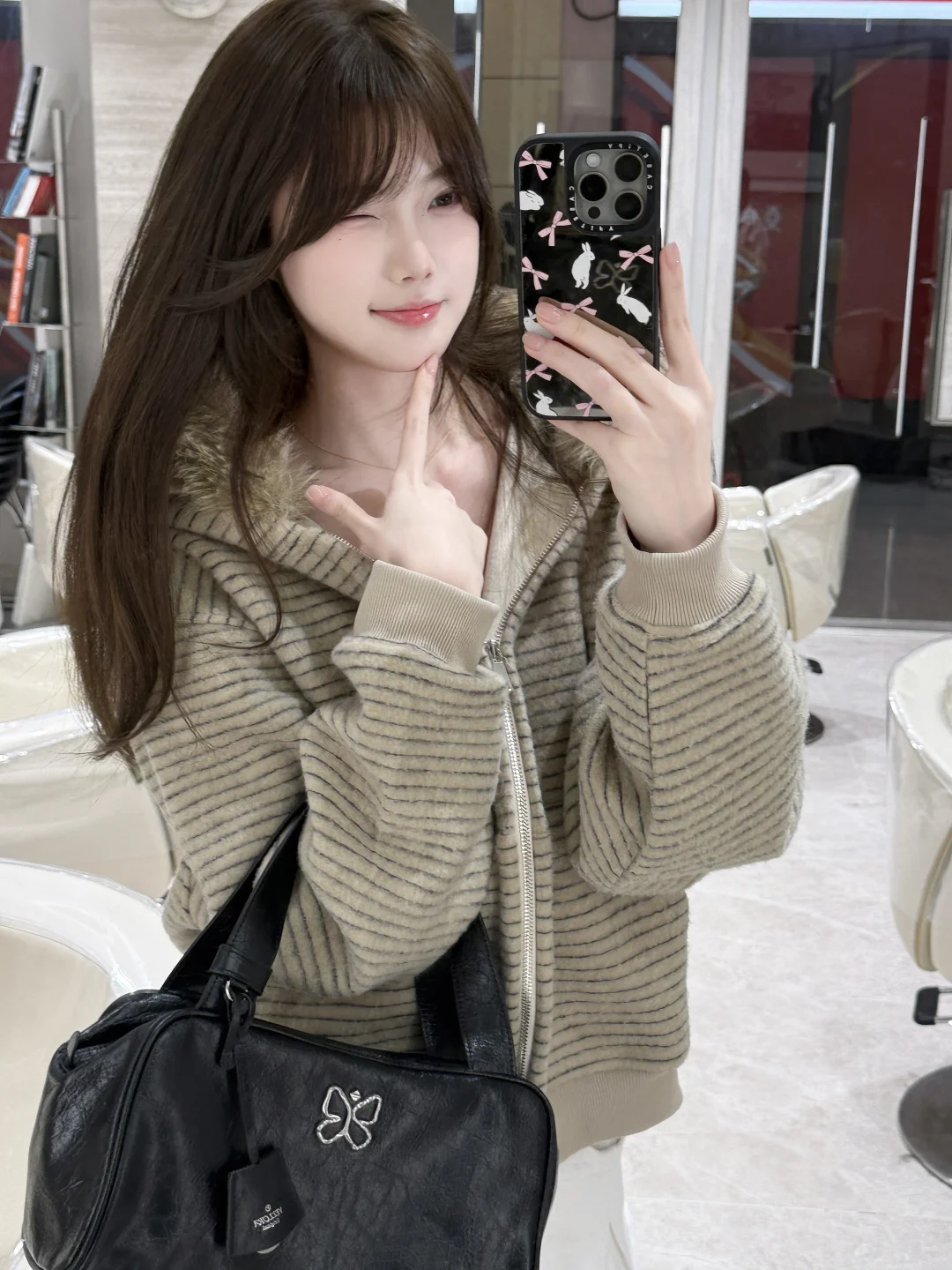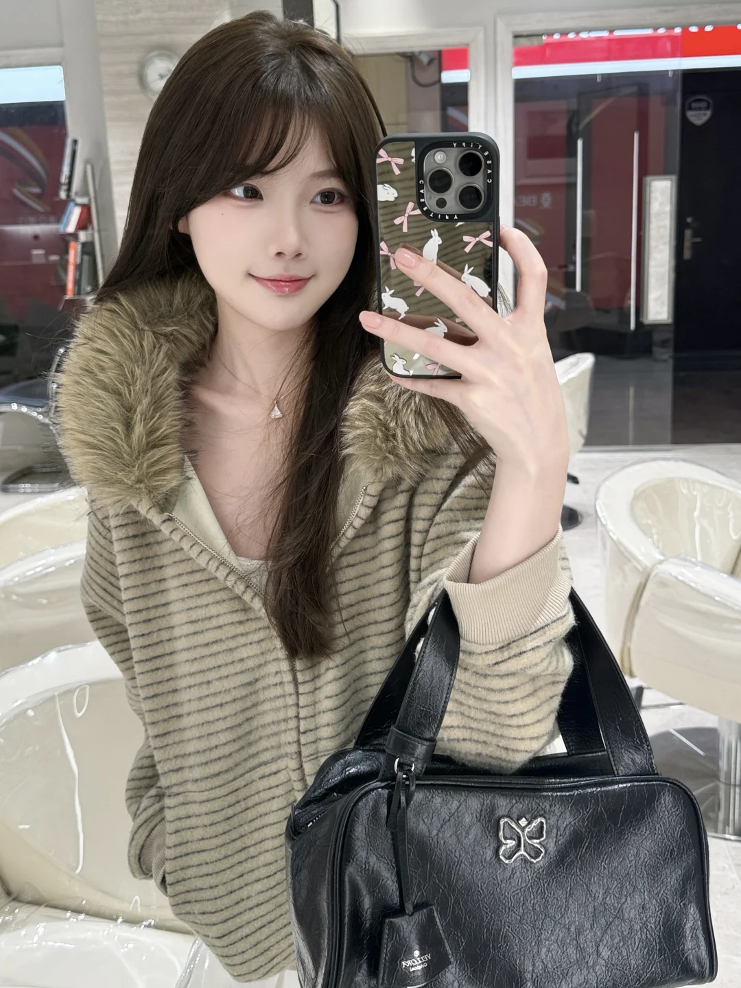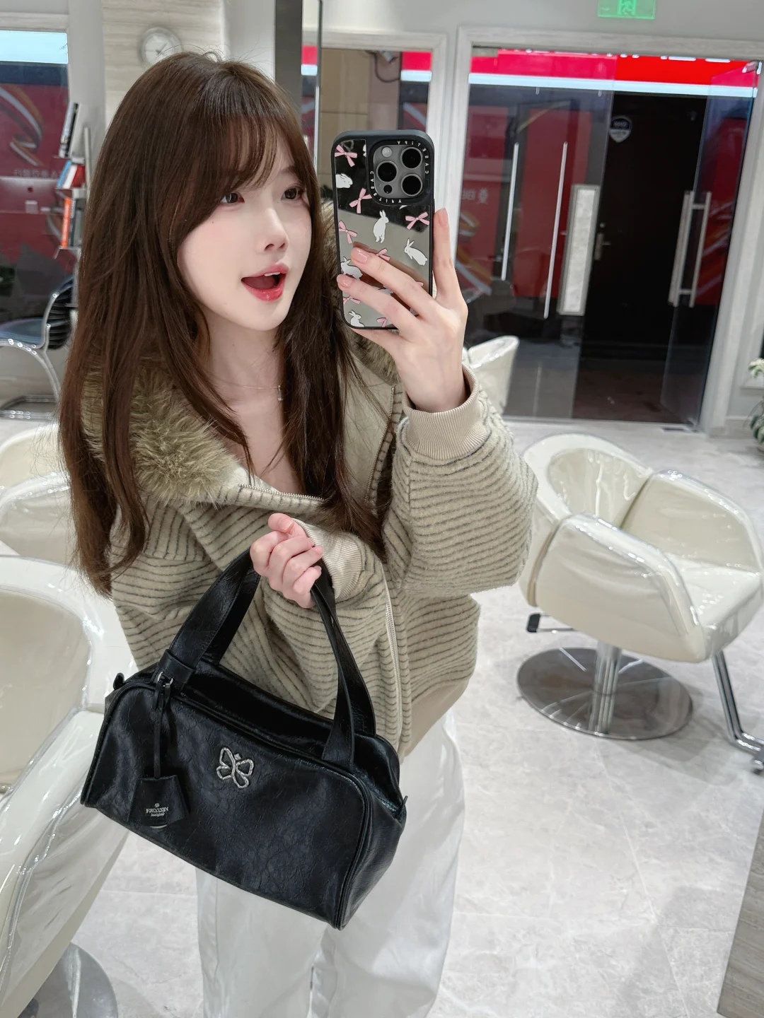 又染新发色啦 好喜欢今天的穿搭跟包包!!
