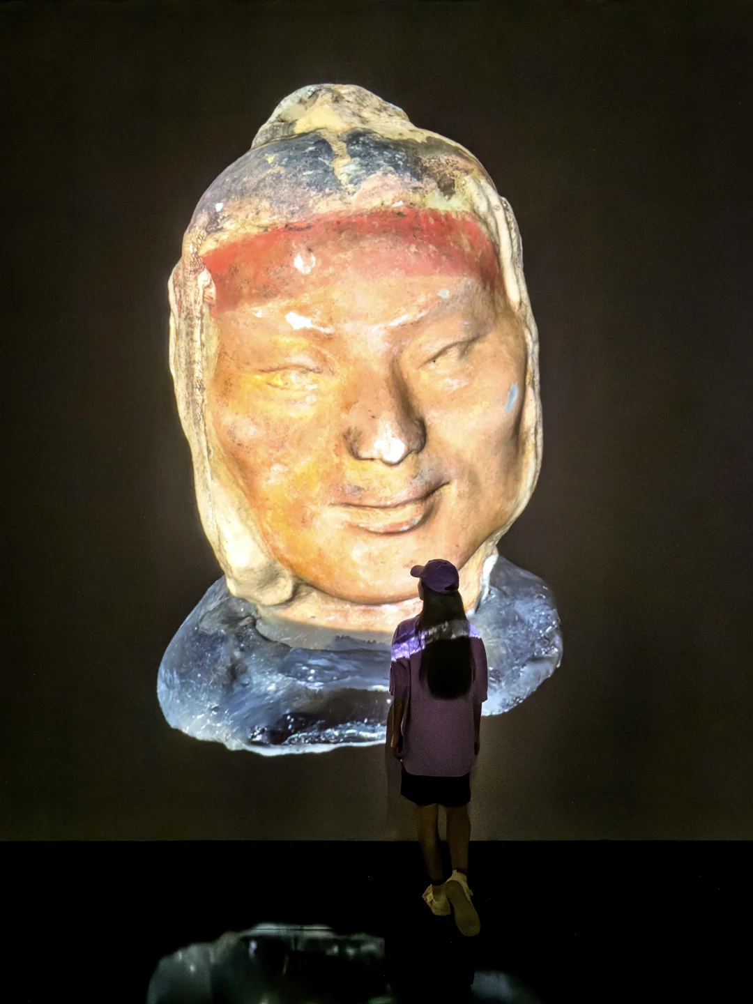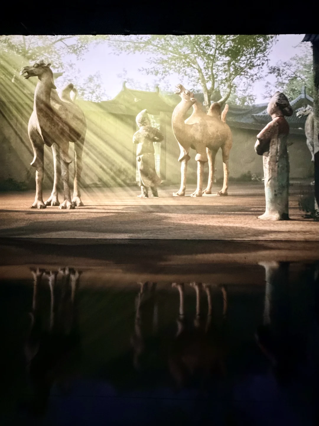 整个影片🎦共分为6个章节,将商周、春秋战国、秦、汉、魏晋南北朝、唐朝以“人”为主题的文物层层展开,通过环绕式的四块大屏呈现在我们眼前,真的太震撼了~[赞R]