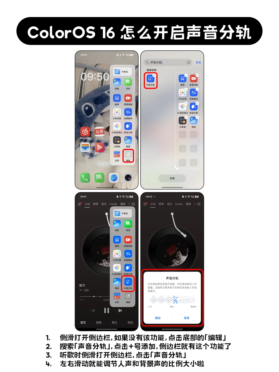 应该也很多喜欢音乐、每天耳机戴好几小时的宝子吧,ColorOS16这个声音分轨建议用用,可以分离人声和伴奏,要知道这个功能在许多软件上是收费的!