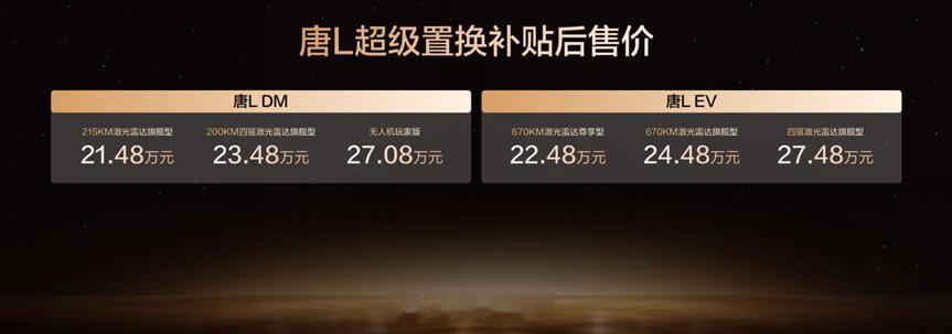 比亚迪这次太给力了……汉L的OTA升级亮相,增加新车色汉L EV,补贴后20.48万~26.48万元汉L DM,补贴后19.48万~24.48万元唐L的OTA也进行了升级,也有新车色唐L EV,补贴后22.48万~27.48万元唐L DM,补贴后21.48万~27.08万元汉L和唐L的OTA升级,有史以来最猛的一次,还有智能泊车场景下安全和责任全面兜底