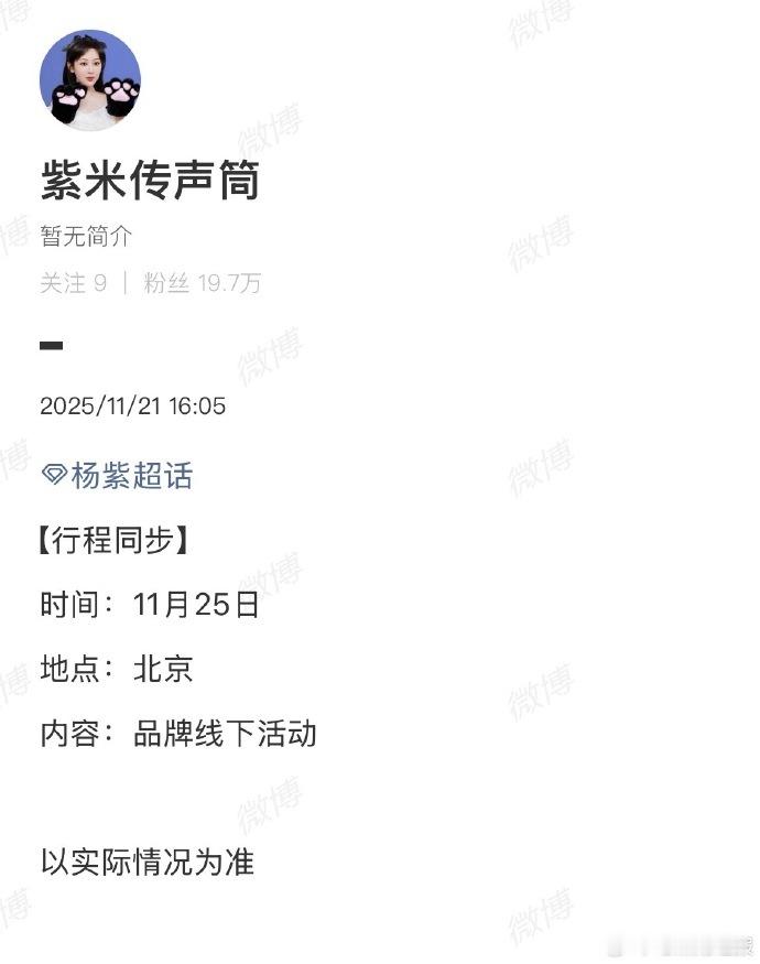杨紫线下活动行程同步更新北京场次,信息披露全面且不拖沓,展现对公开行程的重视,为