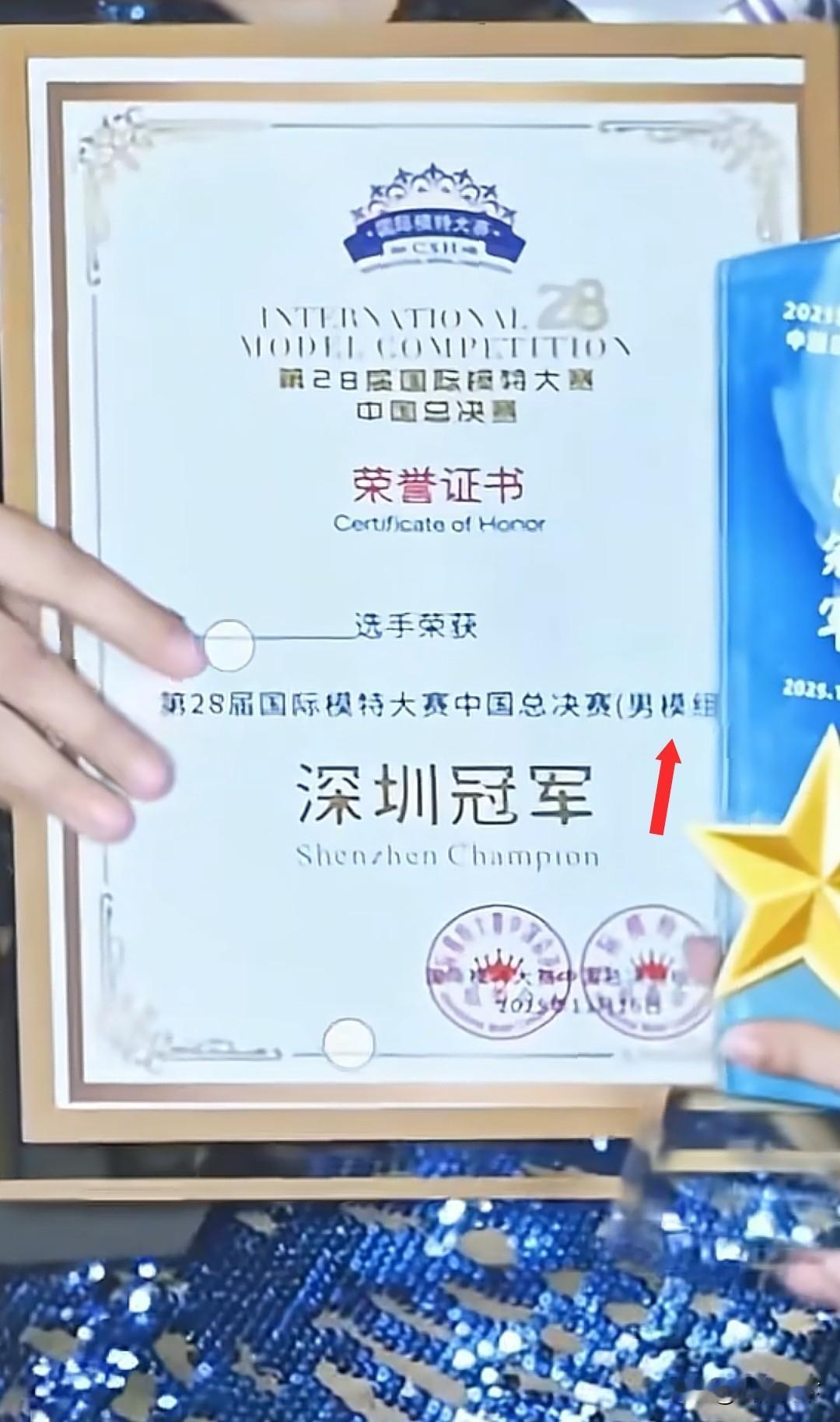 深圳的朋友这回笑不出来了吧,前两天还在笑广东模特大赛的冠军,现在深圳模特大赛的冠军也新鲜出炉了,看起来是比广东模特大赛的冠军年轻点,但是这获奖证书是不是有点草率了,广东模特好歹是太太组的,深圳的冠军居然是男模组的,难道是男扮女装? 这到底是个什么样的组织,难道只是为了领奖拍照,下次要注意细节啊! 看来这两年经济果然是不景气,深圳都开始挣这种钱了。