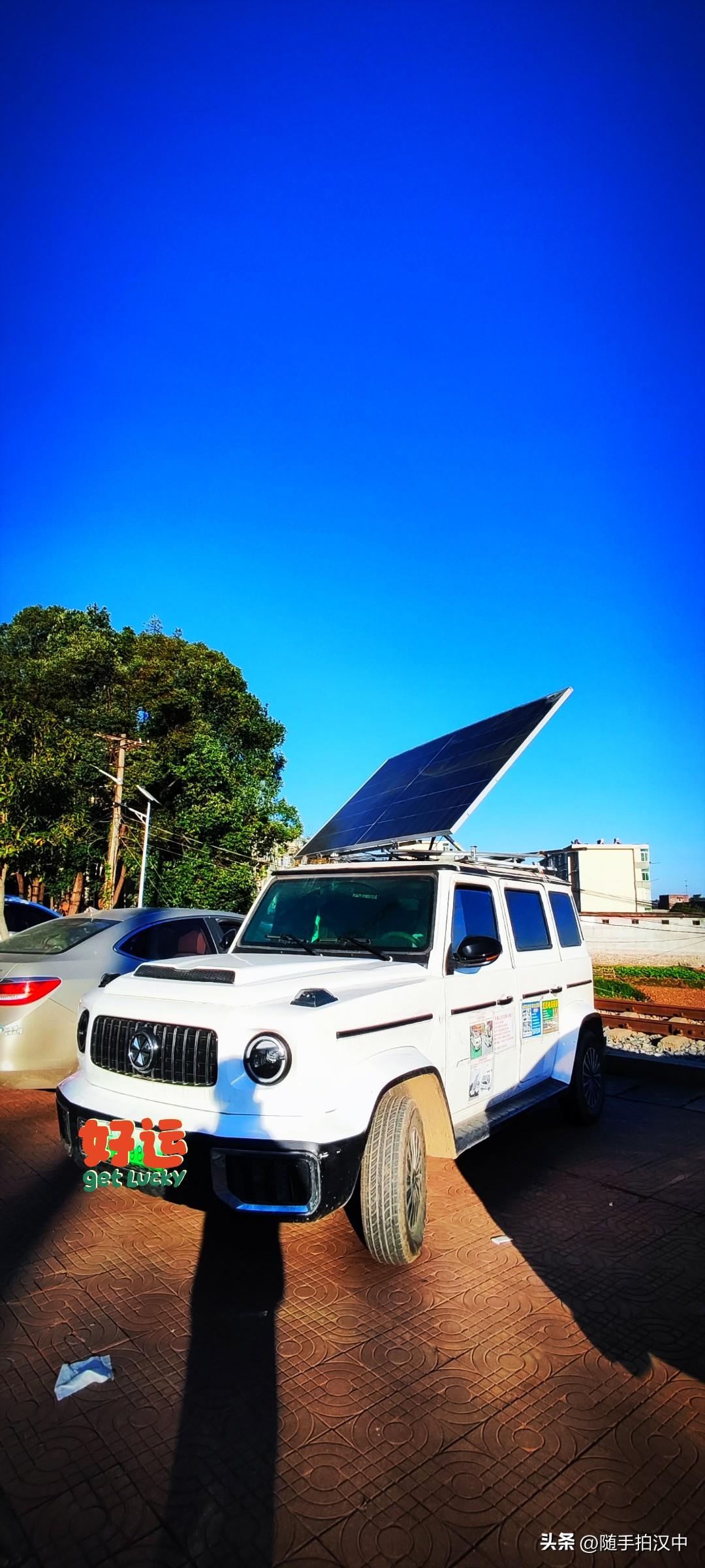 冬日生活打卡季晴天,陪老爸散步。路边停着一辆白车,自带太阳能板。车主一定是对自己