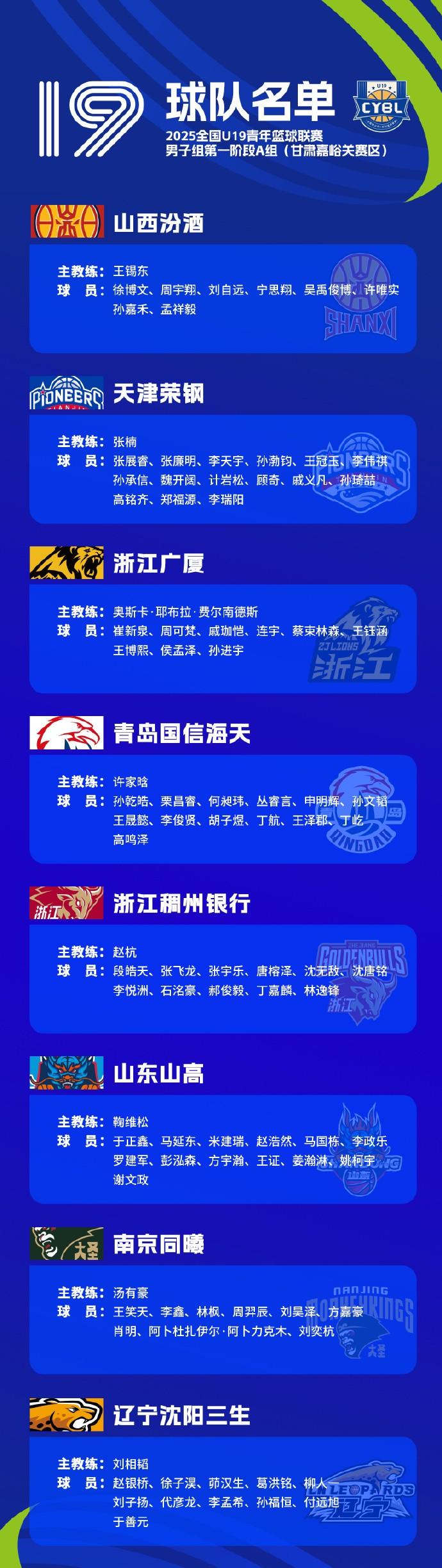 A组-甘肃嘉峪关赛区:山西汾酒、天津荣钢、浙江广厦、青岛国信海天、浙江稠州银行、山东山高、南京同曦、辽宁沈阳三生。