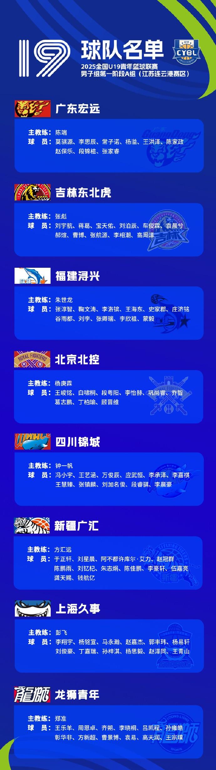 虎扑11月21日讯据全国青少年U系列篮球联赛官方发文,2025年全国U19青年篮球联赛男子组第一阶段名单公布。