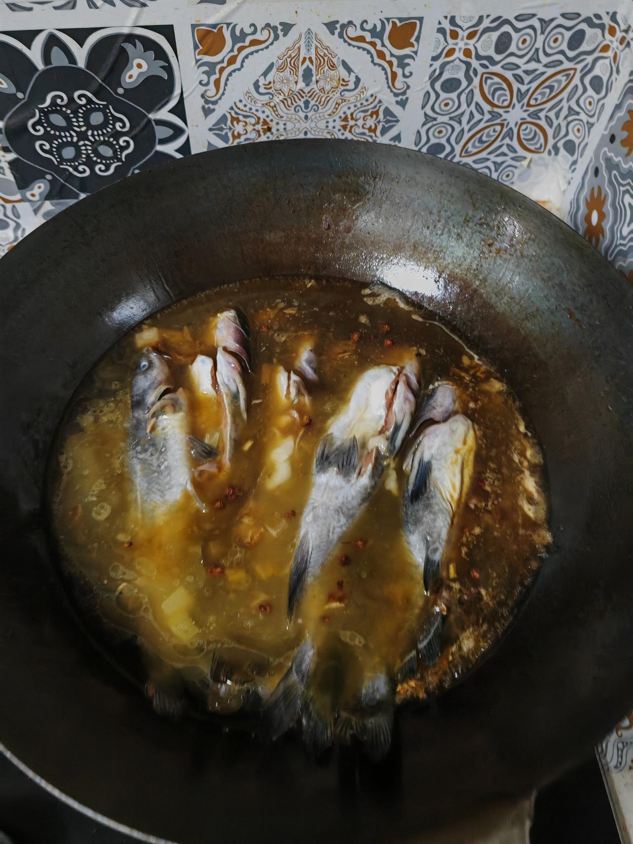 重阳节,我在岗值班,提前给老爹把好吃的做了~ 一直以来,我炖的鱼都与老爹要求烂糊的,连刺都酥了那种有差距~ 昨晚炖了嘎牙子,鱼刚下锅,老爹就吩咐多炖会儿,炖烂糊的~ 还好,嘎牙子一条主刺,没有毛刺,老爹还是喜欢的,当晚就吃了两条,但还是给出一些批评性的建议~ 人老牙先老,老爹对吃食越来越挑剔了!