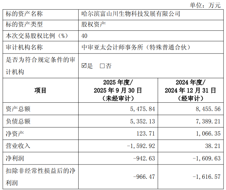 交易完成后,哈空调将不再持有富山川股权,富山川也将不再纳入公司合并报表。富山川主要财务信息如下: