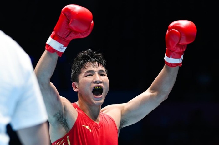 “一上场就拼”的王小保,在拳击男子80公斤级比赛“一黑到底”。他先是在四分之一决赛中力克该项目杭州亚运会冠军、新疆队选手托合塔尔别克·唐拉提汗,又在半决赛中继续高歌猛进,最终在决赛中以5:0战胜山东体育学院队选手王金祥,夺得自己首枚全运会金牌。