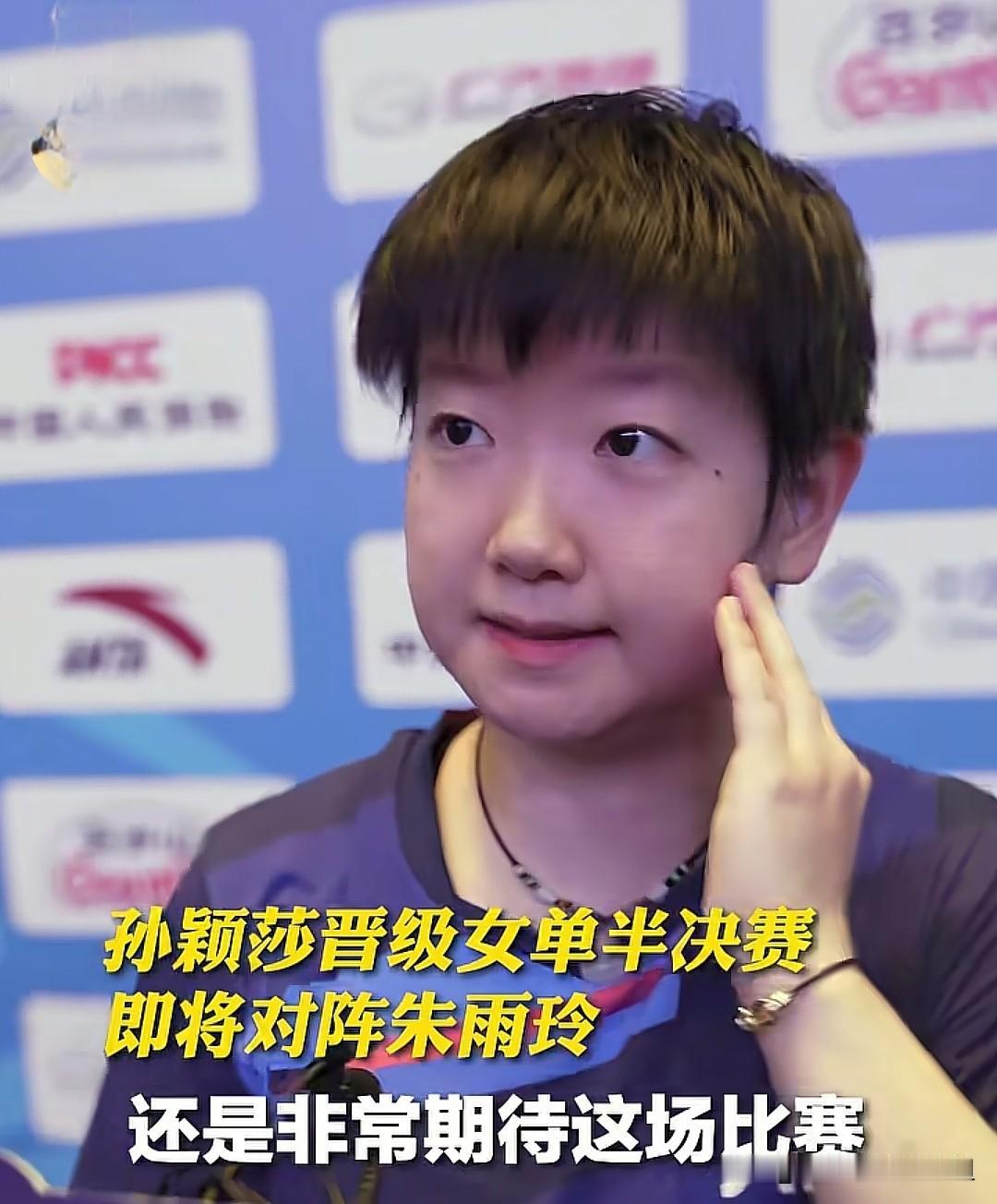 孙颖莎半决赛对战朱雨玲,究竟有几成胜算打入决赛? 莎莎采访时说,朱雨玲曾是原国