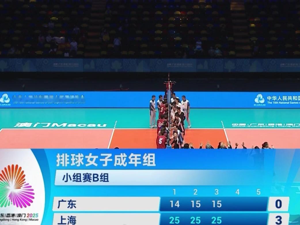 全运会女排成年队第一轮13:00场:王云蕗状态神勇,局末一锤定音,助北京女排3-0四川女排(25-22 25-15 25-21)取得开门红! 另外B组,上海女排3-0轻取广东女排(25-14 25-15 25-15)。