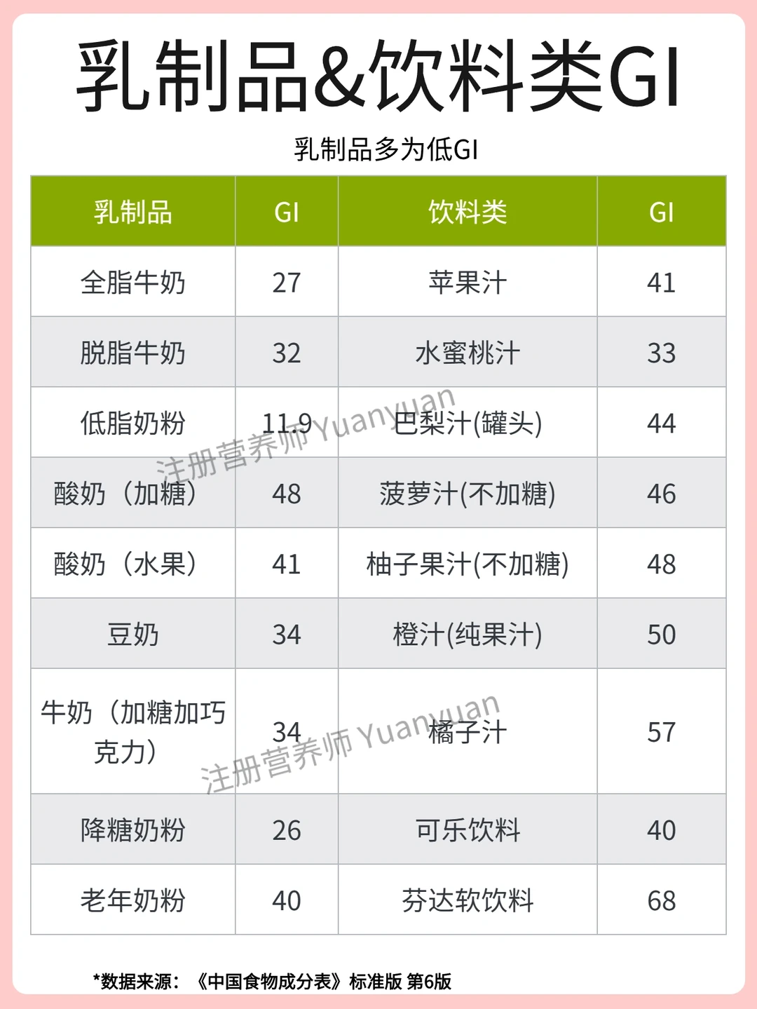 ⚠️食物GI是测试得到的,同种食物,不同生长季节和地域GI有差异,从不同参考文献中看到GI有差异属于正常现象,这篇笔记中数据参考《中国食物成分表》标准版 第6版,数据仅供参考。