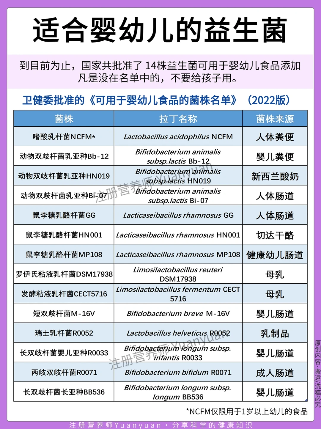 ✅看菌种菌株:要在《可用于婴幼儿食品的菌种名单》中