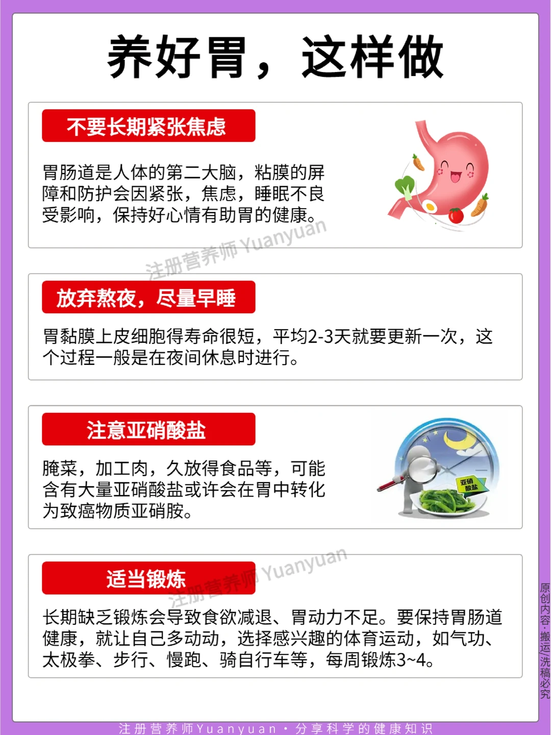 总之,养胃要从日常习惯做起,尽量避免伤胃行为,多多吃护胃食物,如果胃实在不舒服一定不要硬抗,早早去检查。