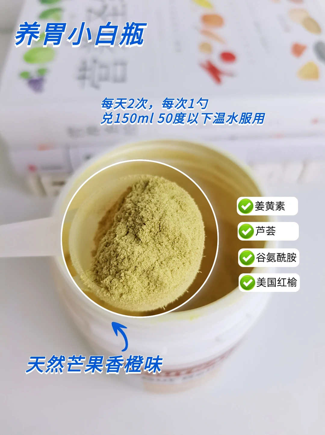🔅里面有四大养胃元素,姜黄粉、美国红榆,芦荟和谷氨酰胺,他们的作用就像给胃黏膜穿上铠甲,可以应对日常胡吃海喝,喝酒应酬对胃的刺激。