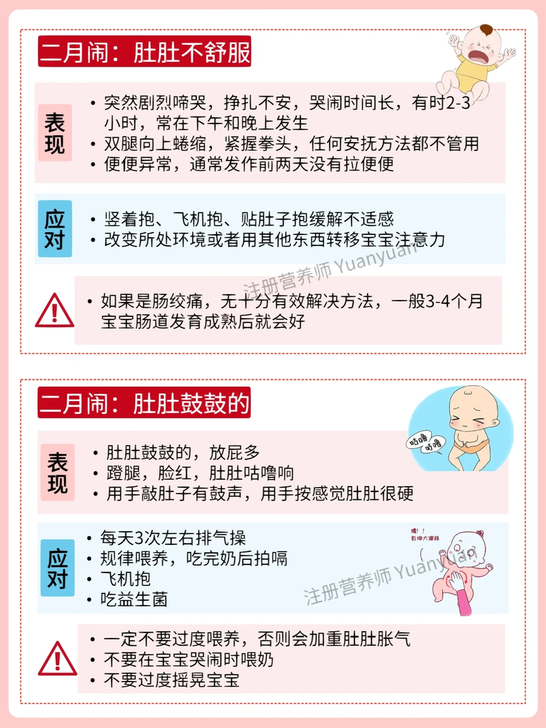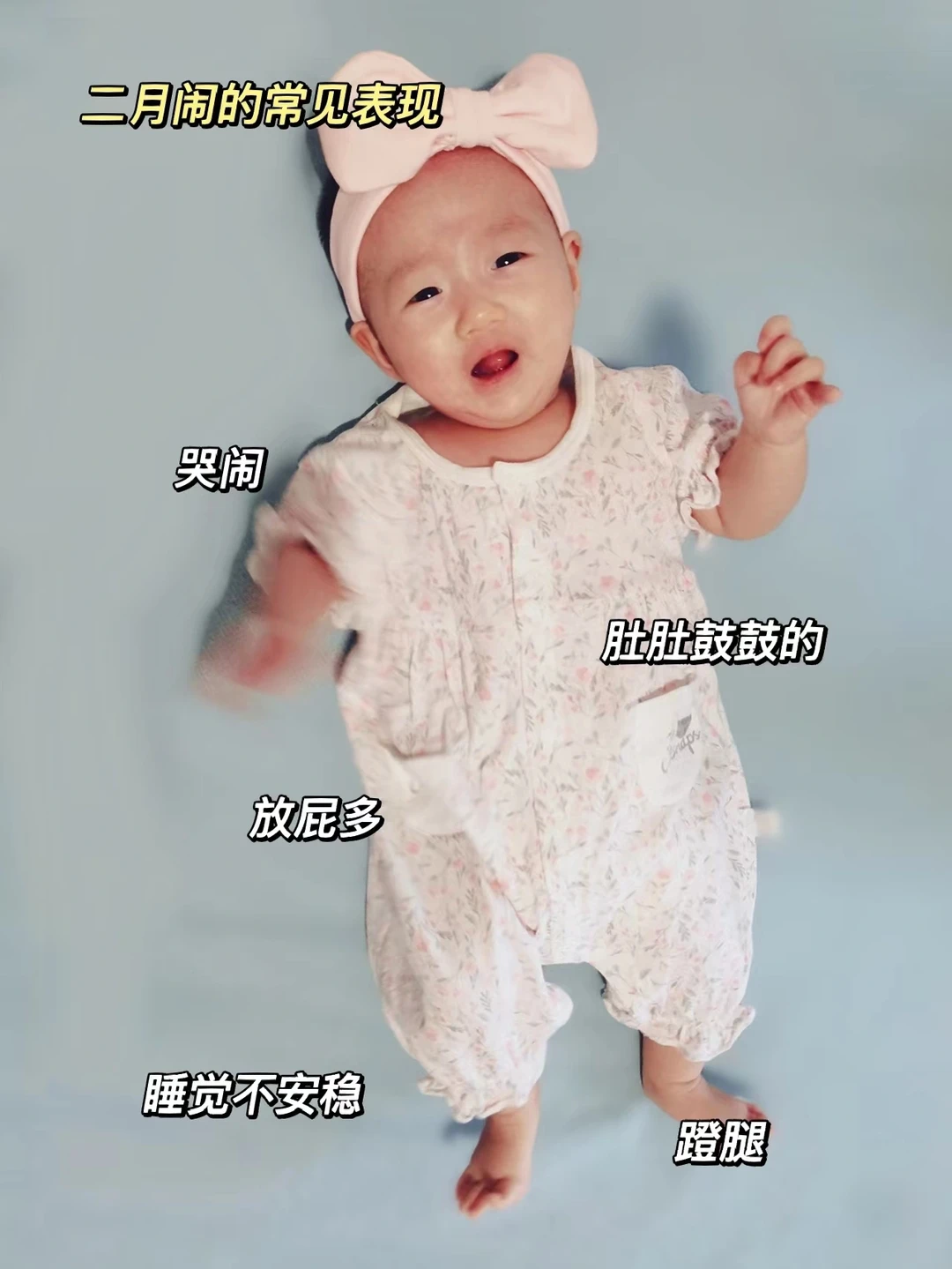 💁🏻♀当然二月闹中最常见的原因就是胀气了,要知道这个时候孩子进入了“猛长期”,随着身体的快速生长,因为肠胃发育尚不完全,微生态容易不稳定,奶消化时就可能产生气体,再加上吃奶吸入空气,肚肚就开始鼓鼓的,宝宝不会表达就经常哭闹。
