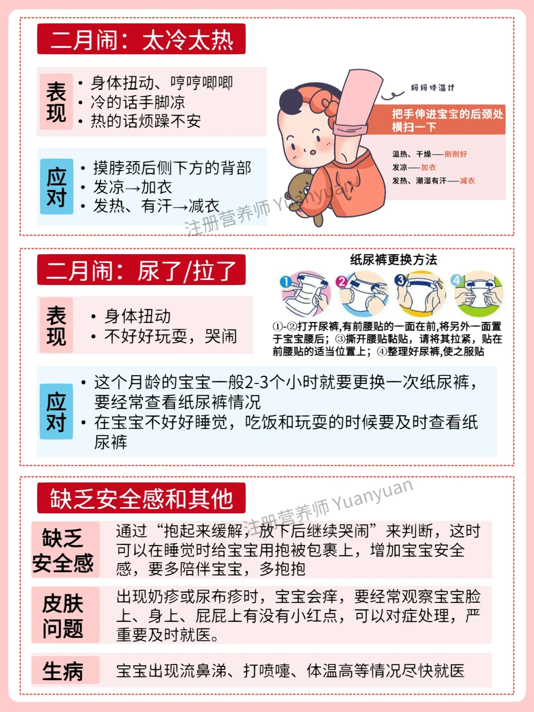 ➡️二月闹的情况其实分很多种,困了、饿了、尿了、缺乏安全、生病等等(详见图2-4)并不是所有情况都是宝宝饿了,或者肠胀气,宝妈们应该区分对待。