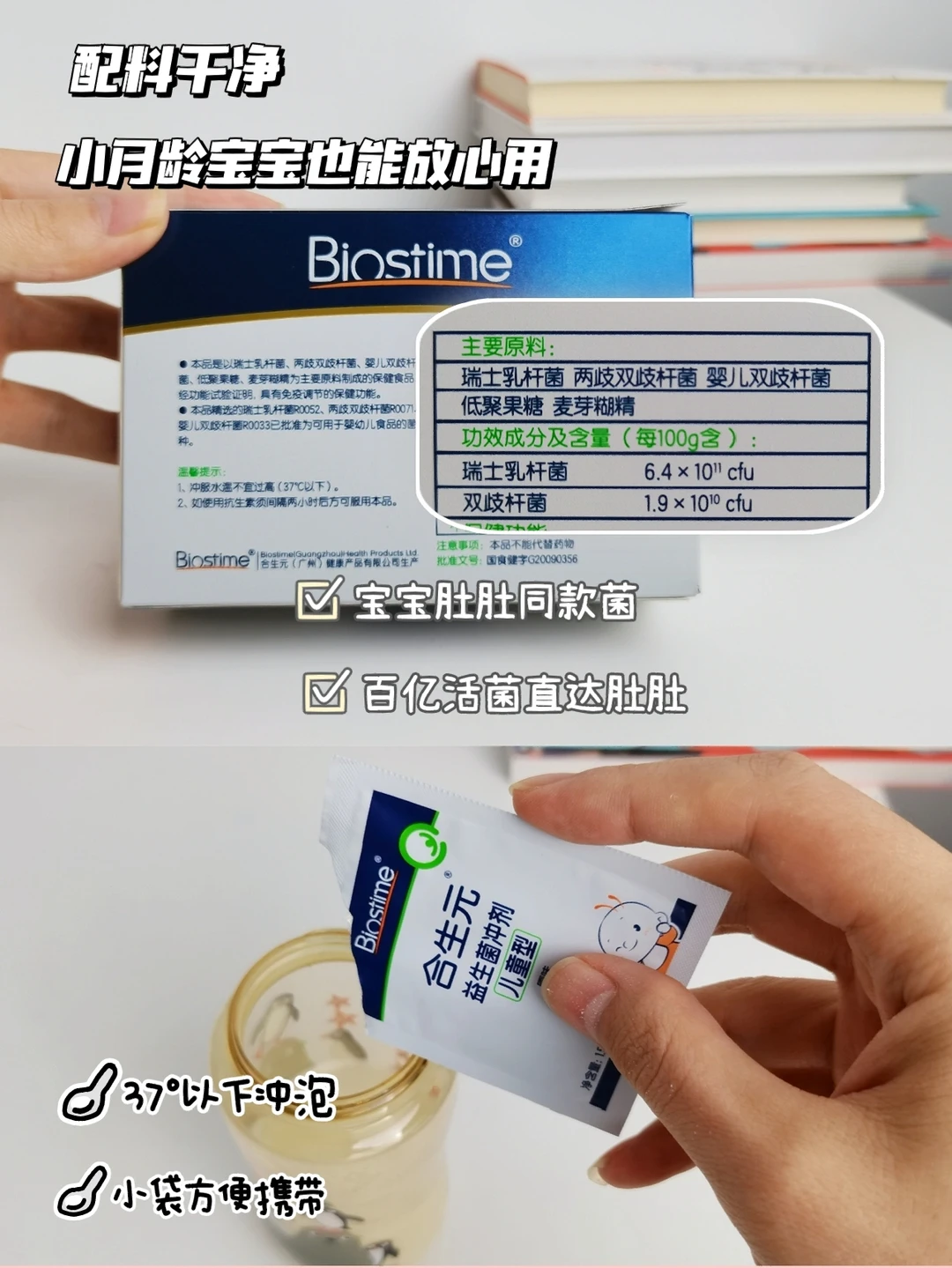 ➡️另一方面,除了排气操这种偏物理的外调,面对二月闹也需要给宝宝内养,可以适量补充益生菌,毕竟问题还因为进入了猛涨期,肚肚不稳定。