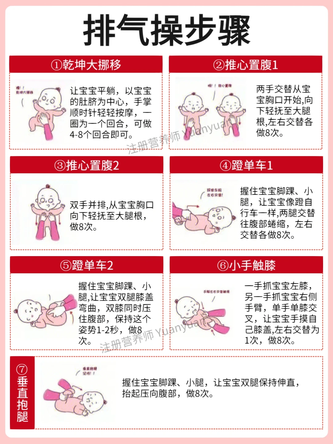 ➡️所以给宝宝做排气操是必不可少的(排气操做法详见图5)
