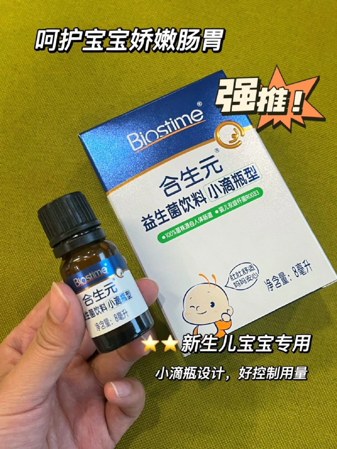 像这里面的婴儿双歧杆菌R0033就是比较适合二月闹补充的,是健康宝宝肚肚里的同款,刺激性自然也更低了,新生儿肠胃很敏感,补充这个就比较合适,而且平时总担心的便便不ok也能照顾到,带娃更省心些。