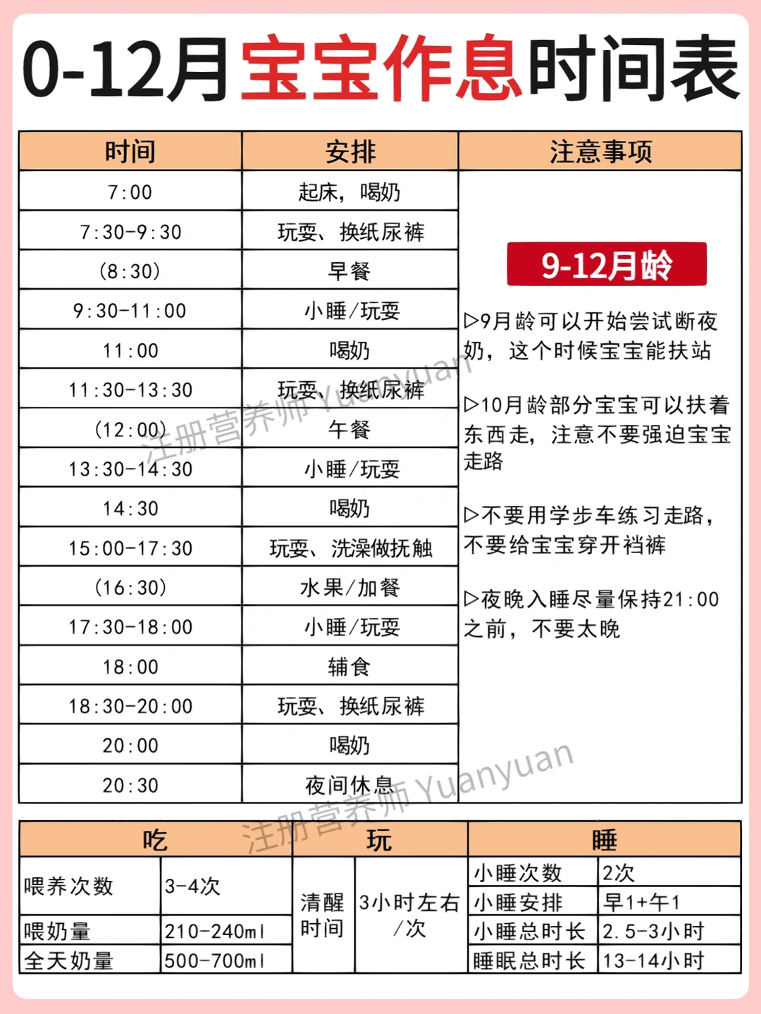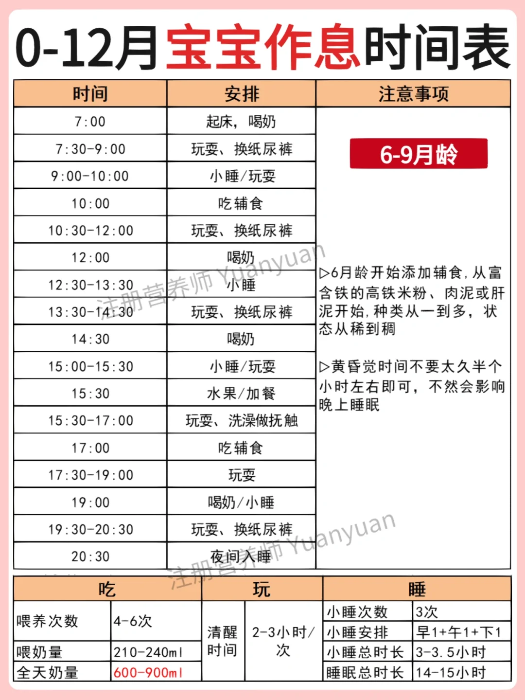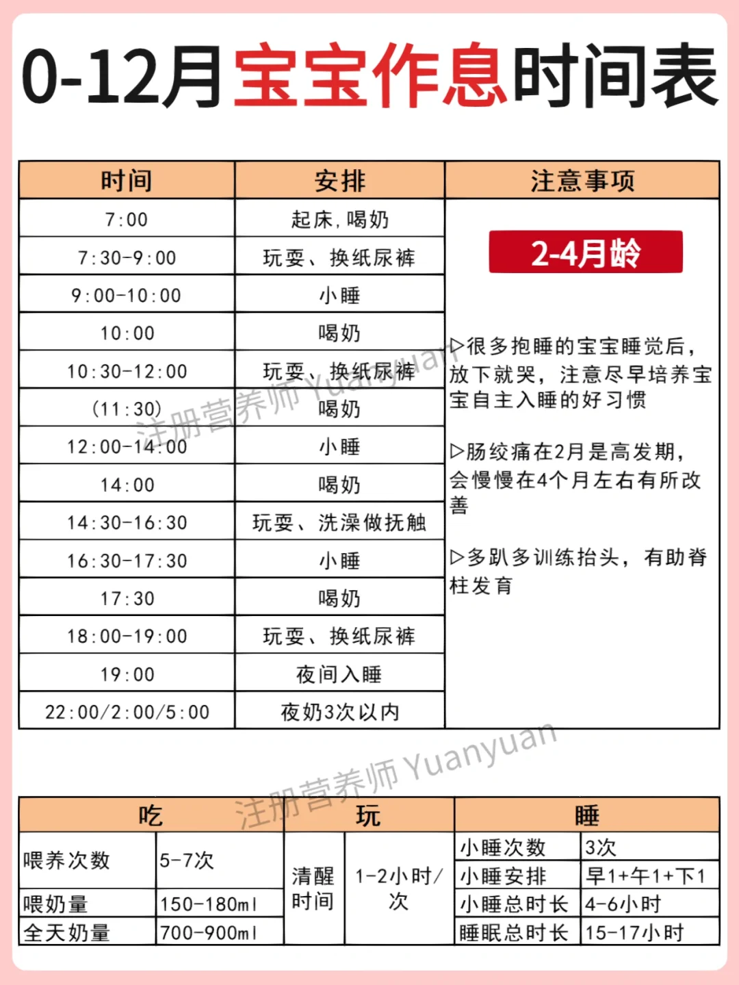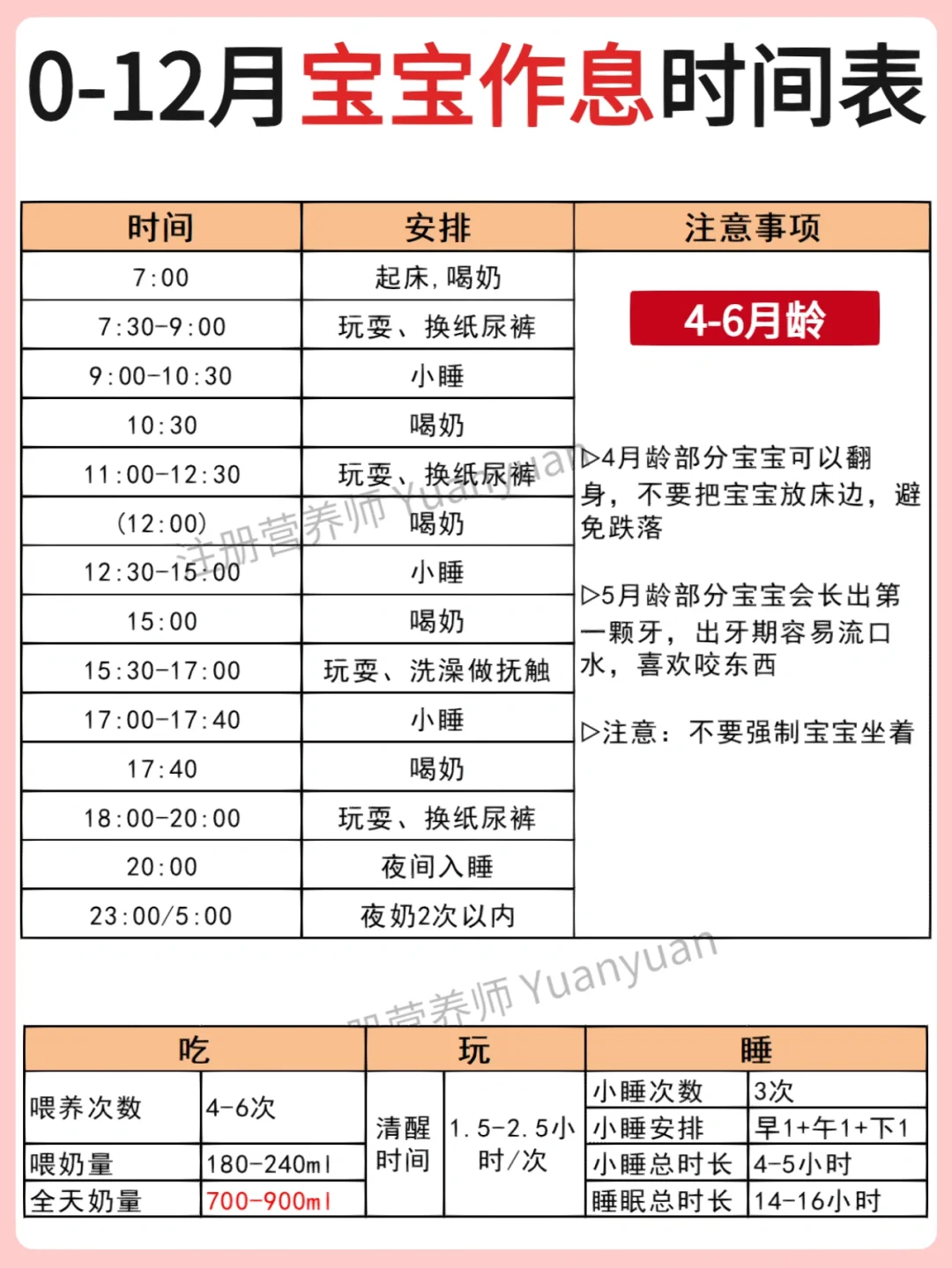 ⚠️注意:每个宝宝都是独特的,这个表仅供参考,只要宝宝精神状态正常、身高体重正常,吃睡玩方面和表有些差异是没有问题的。