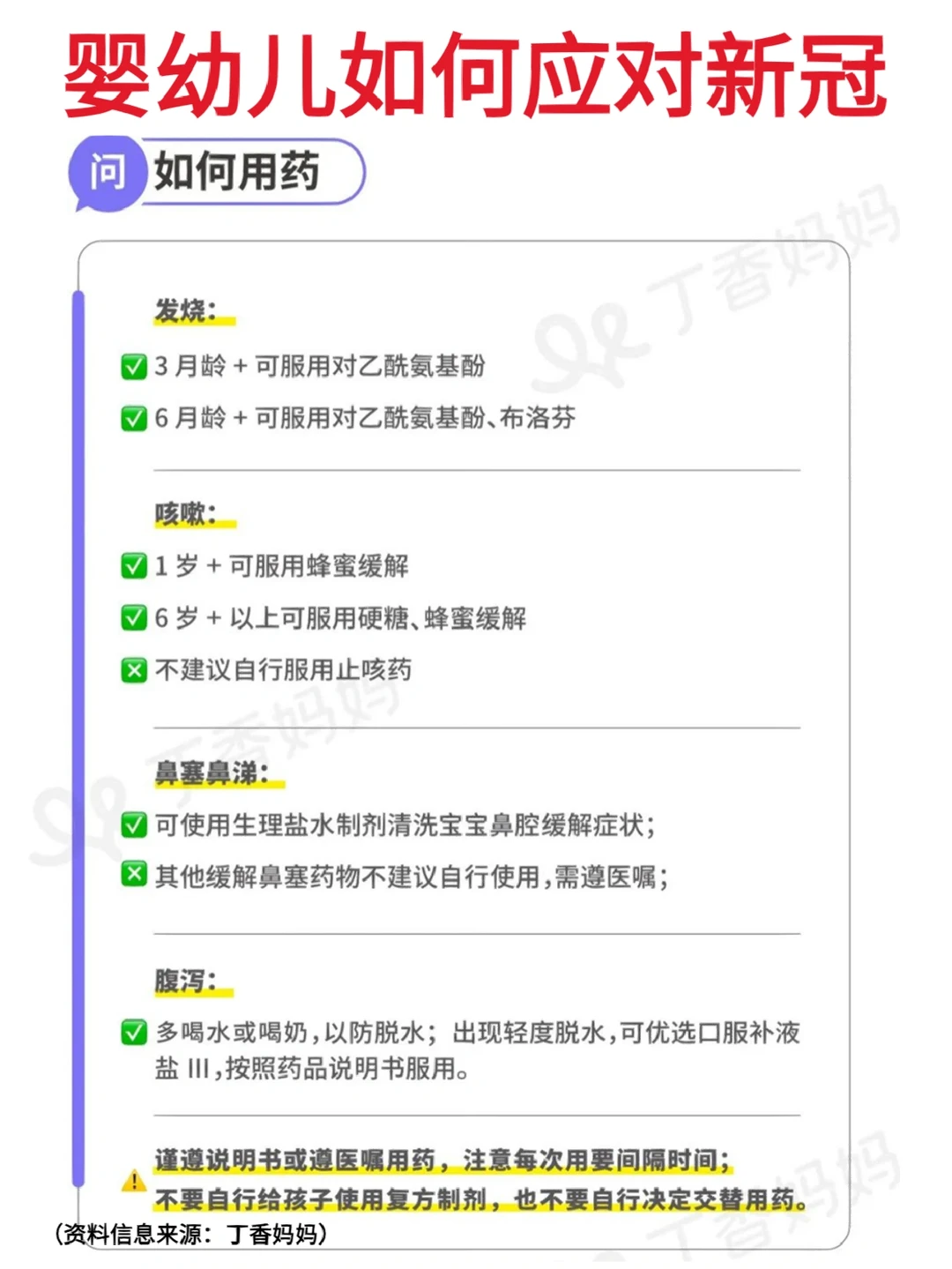 声明笔记资料来源:图1-5来源北京新闻广播,北京市儿童新冠会诊专家组成员张宜的解答。图4⃣最下面一行不是来源北京新闻网,是问诊时拿到的回复。图6-8来源丁香妈妈。 . 虽然进入放开状态了,但是对于有孩子的家庭也要增加个人防护,备好药,了解新冠发病症状和如何应对,有需要大家收藏保存! . 请大家合理采购药物,避免盲目囤药!
