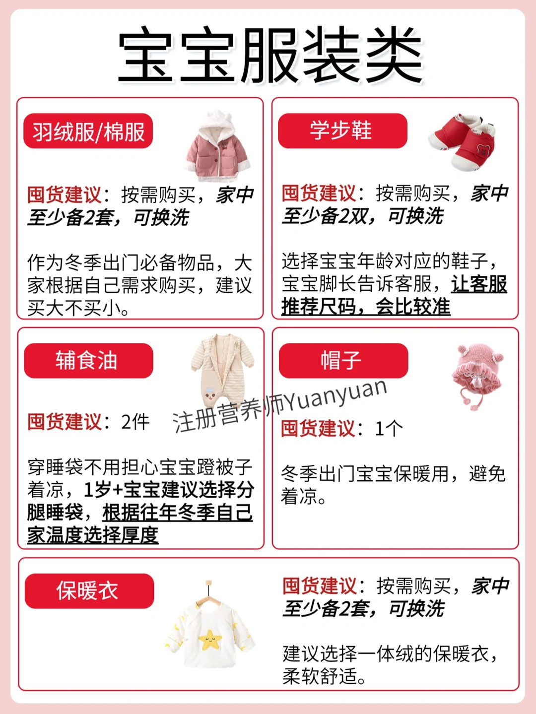 羽绒服/棉服、学步鞋、冬季睡袋、帽子手套、一体绒保暖衣