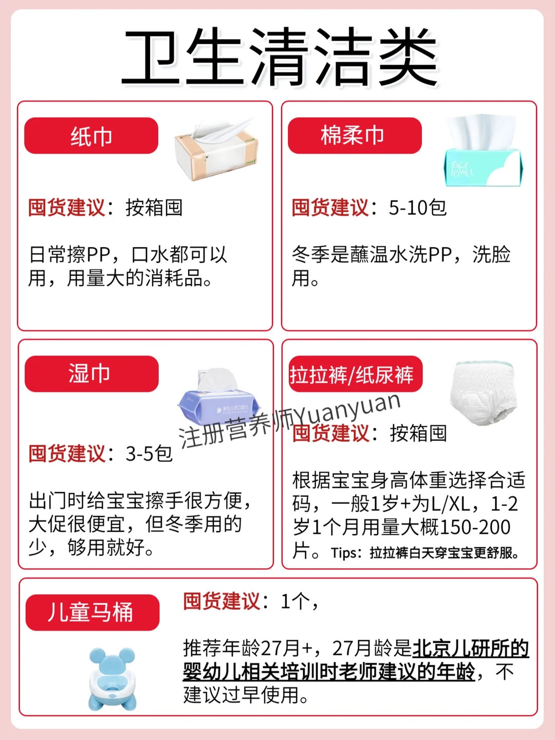棉柔巾、纸巾、湿巾、拉拉裤/纸尿裤、儿童马桶