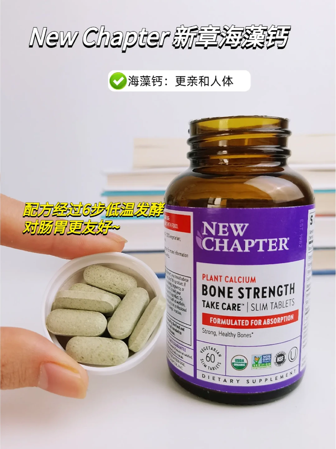 🔅对比了一些产品后,我选择了New Chapter新章海藻钙,钙源是选自冰岛的有机红海藻,是天然植物钙,营养相对温和好吸收。而且它家还额外添加低温发酵的VD和VK,不仅可以更好帮助钙吸收,而且发酵后的营养对肠胃更友好👏,不用担心会出现胃胀这些不舒服的情况。