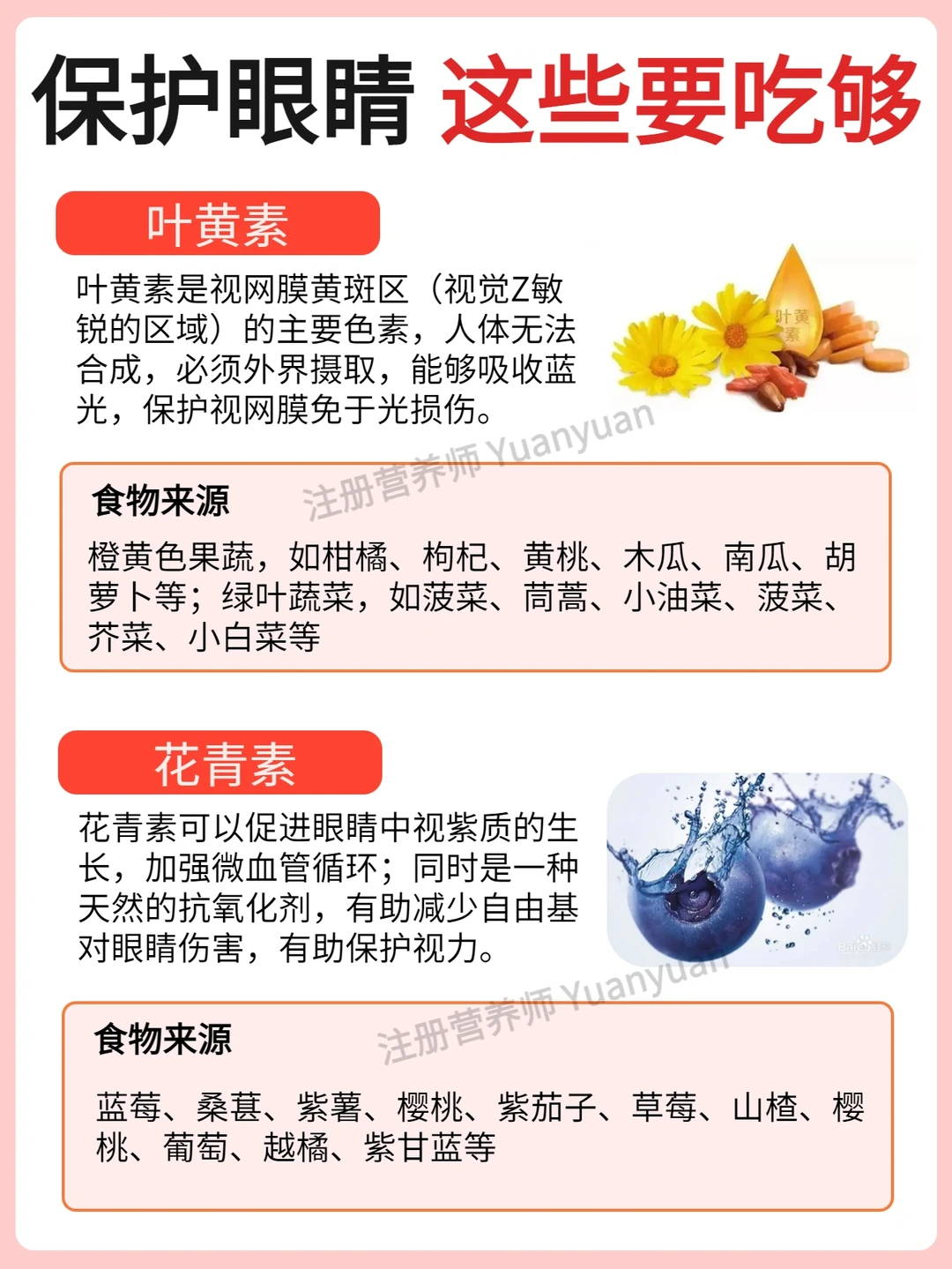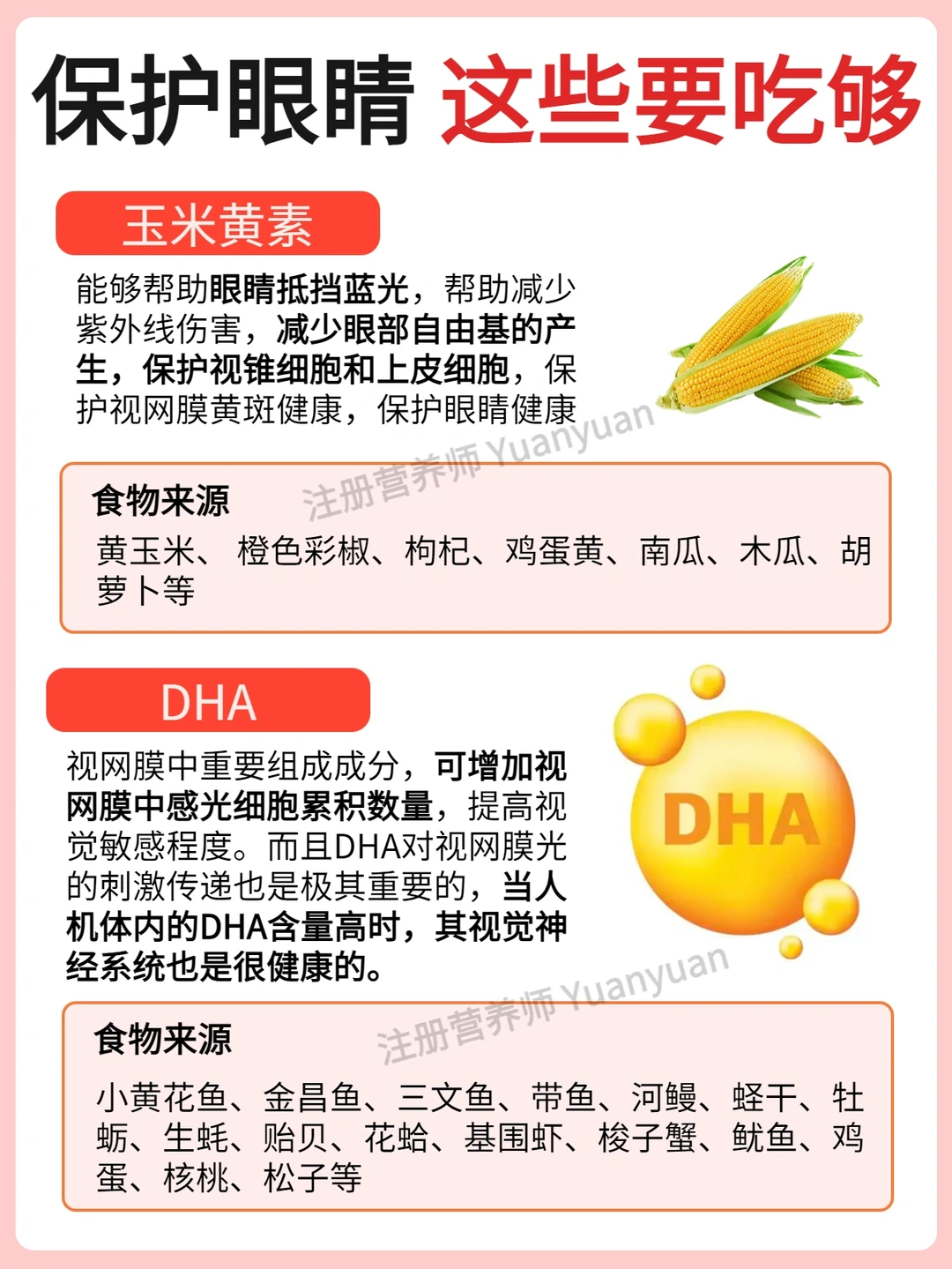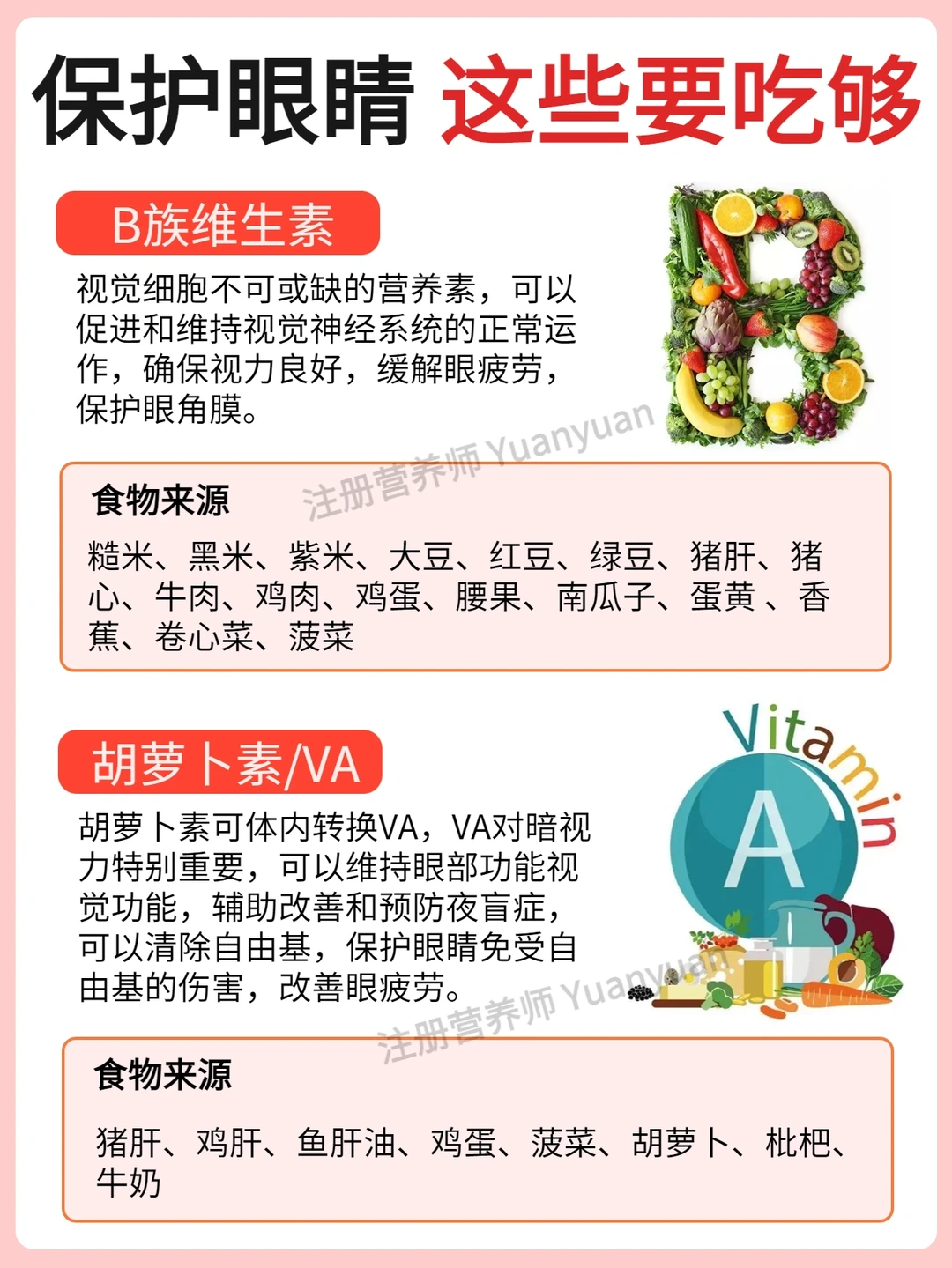👉保护眼睛需要先给它提供足够的营养,最常见护眼养眼的营养素有