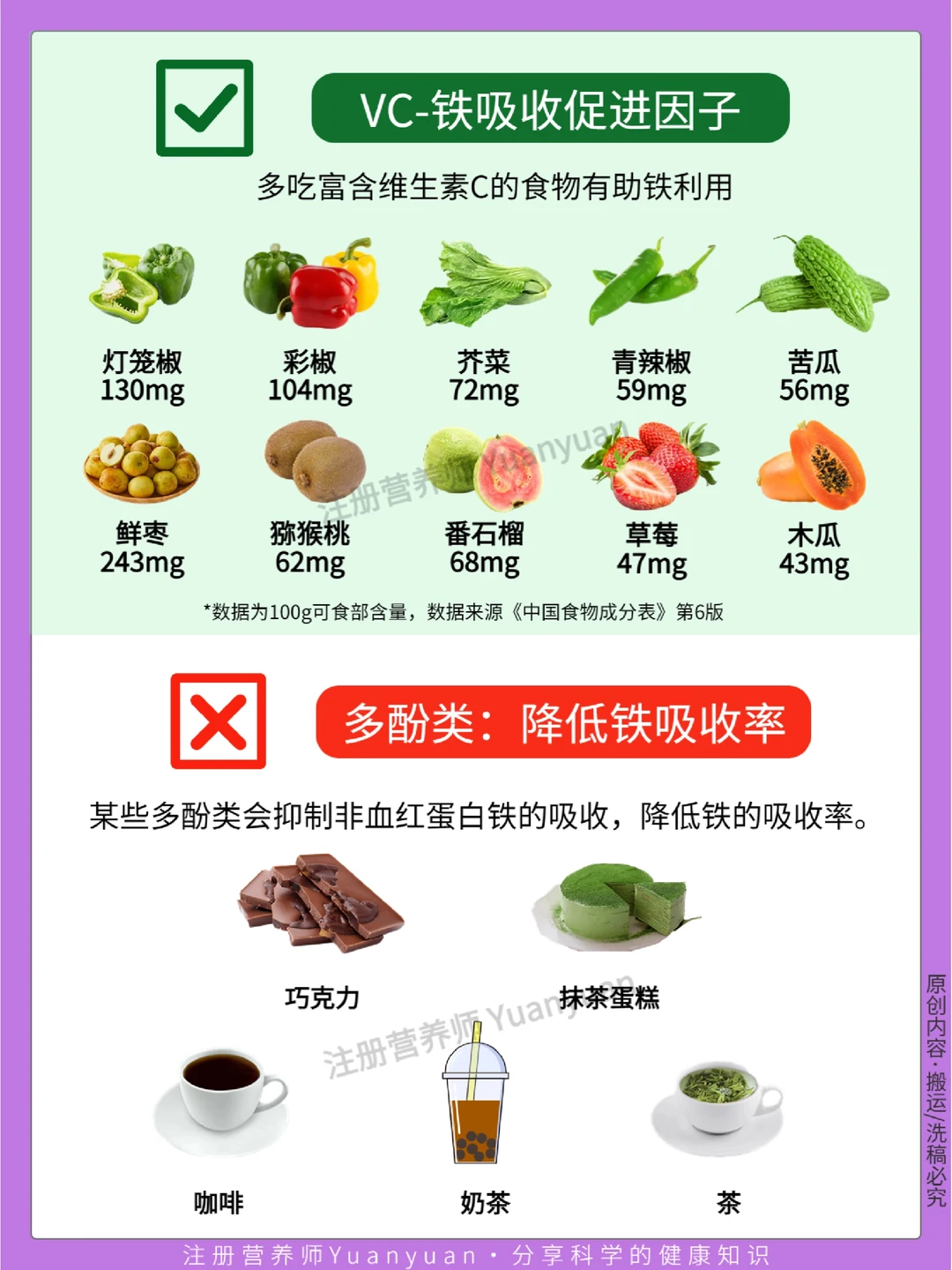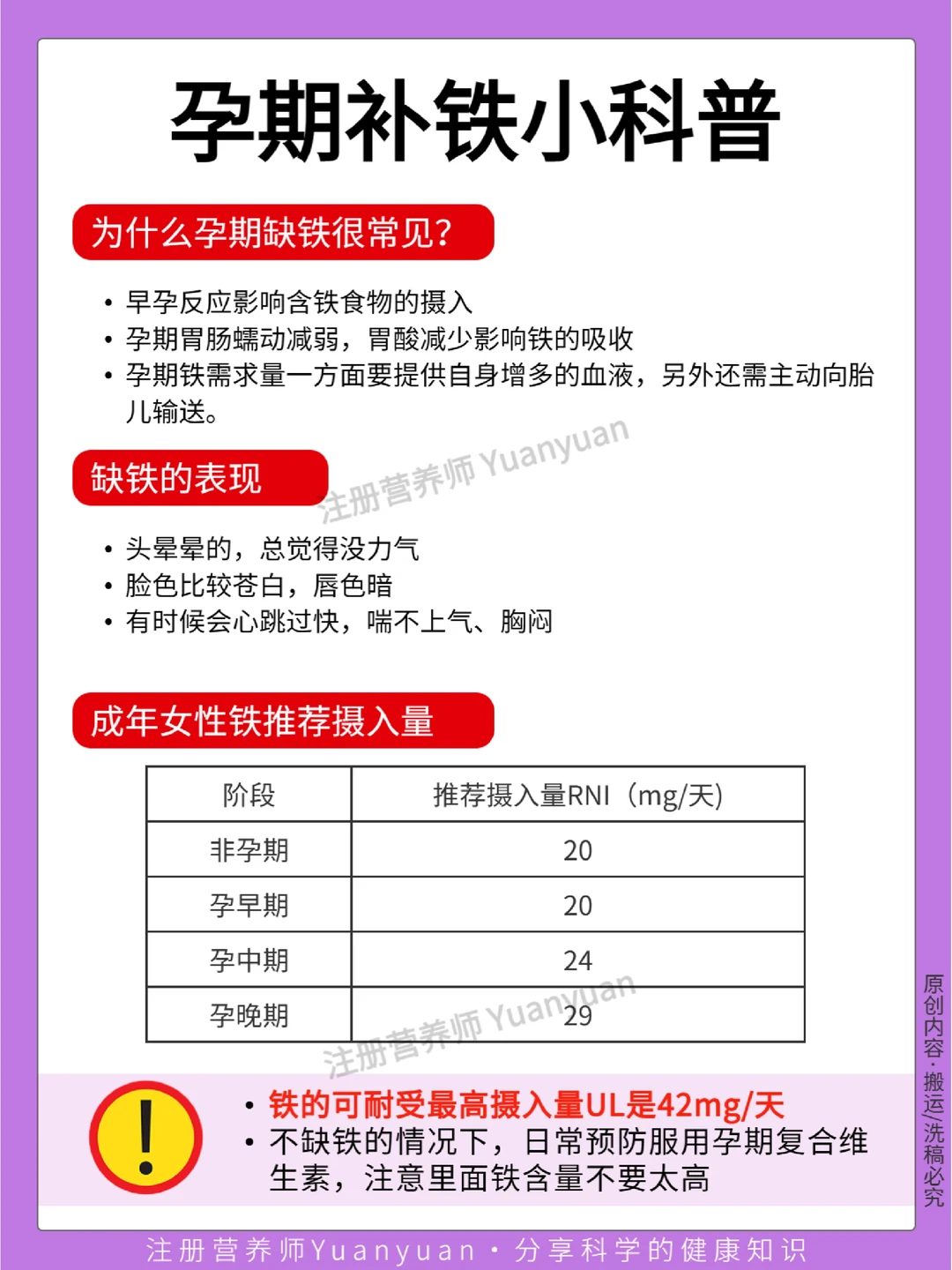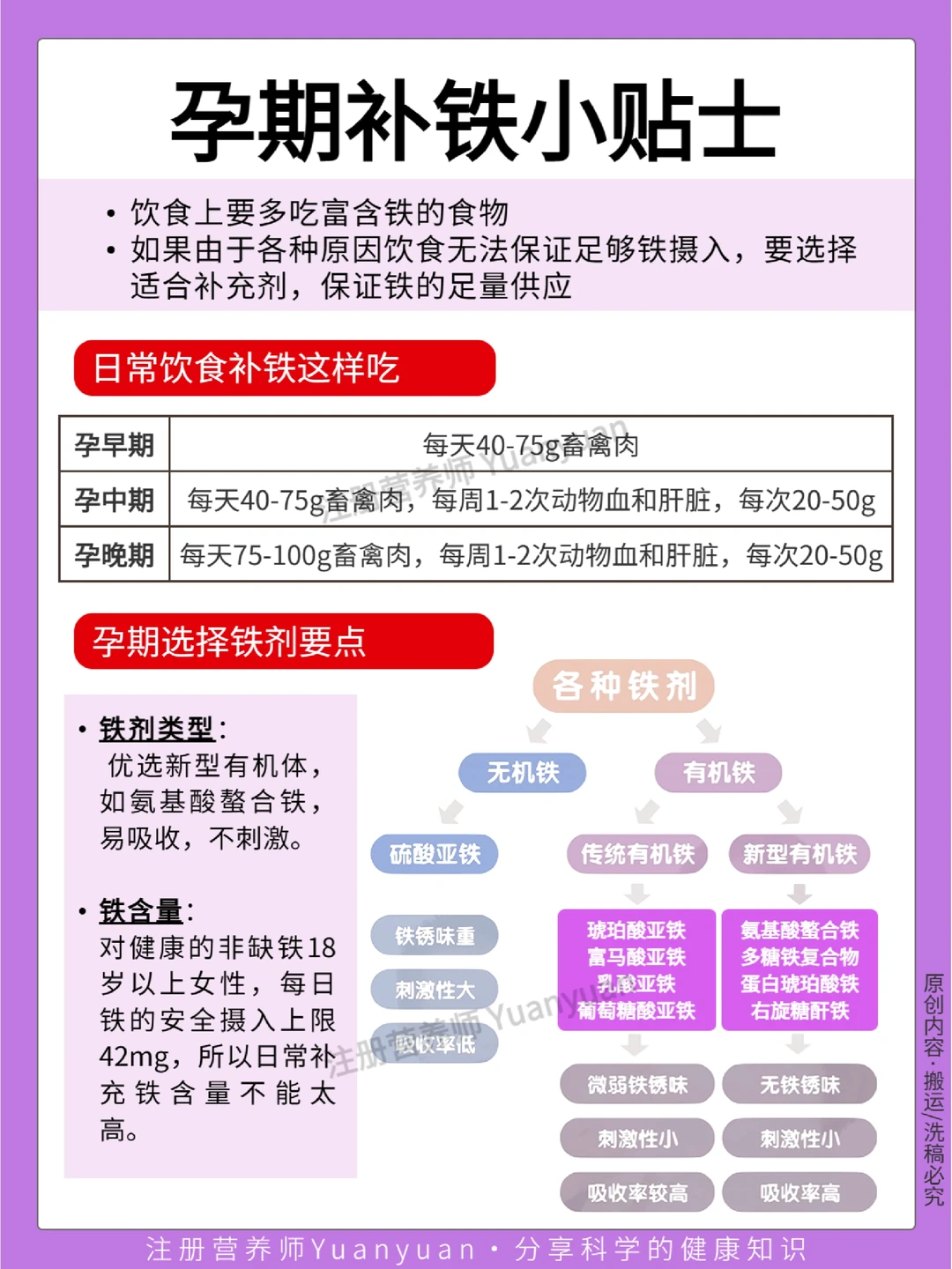 作为营养师,我一直的观点都是补铁优先食补🥗,但如果因为孕反等各种原因饮食无法保证铁的摄入,就选补充剂💊来保证身体和胎宝宝对铁的需求。