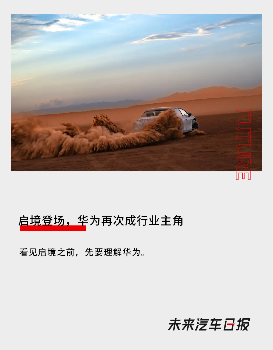 得益于华为加持,启境首款车型将搭载华为乾崑最先进的智驾和座舱等解决方案。即使这辆新车将于明年6月上市,但其也拥有“对抗未来”的底气。