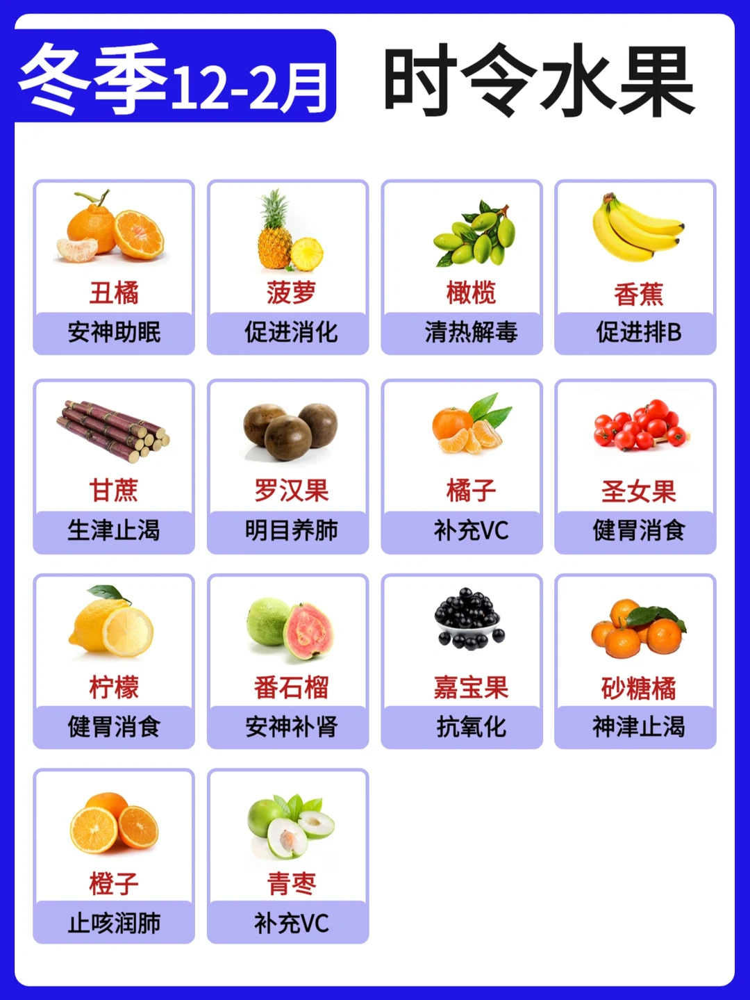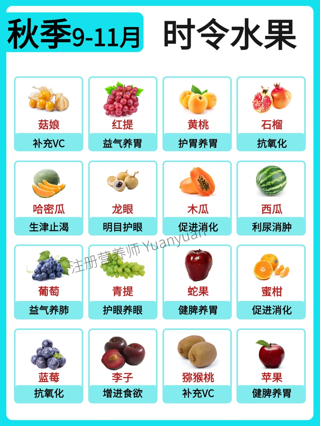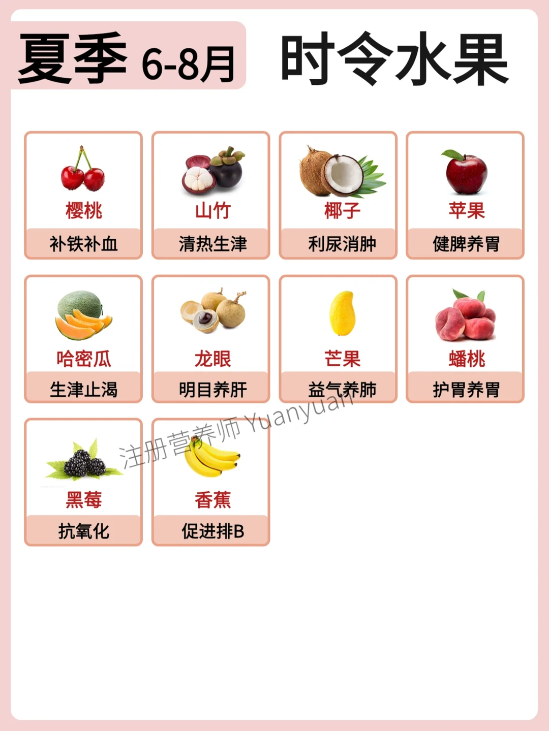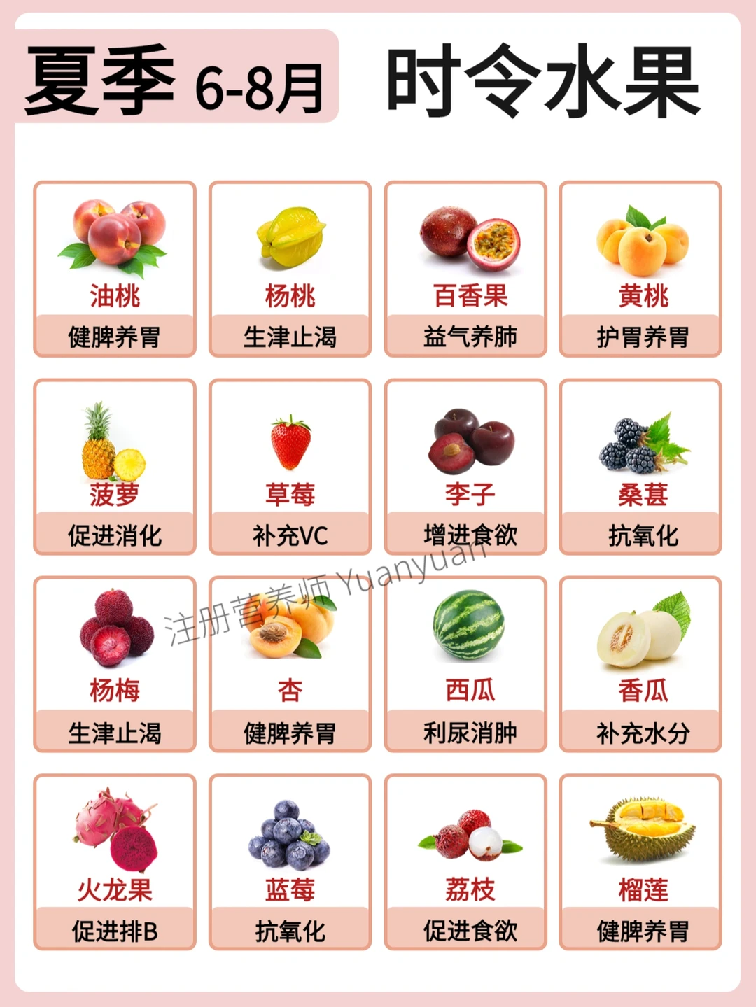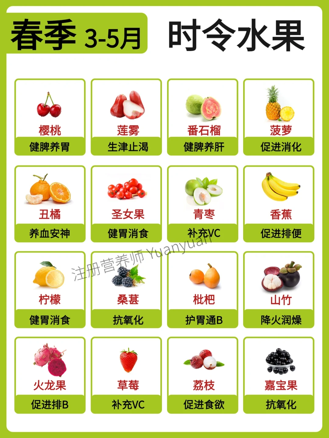 👉春、夏、秋、冬各季节水果时间表、相关的营养功能、水果属性,一目了然!