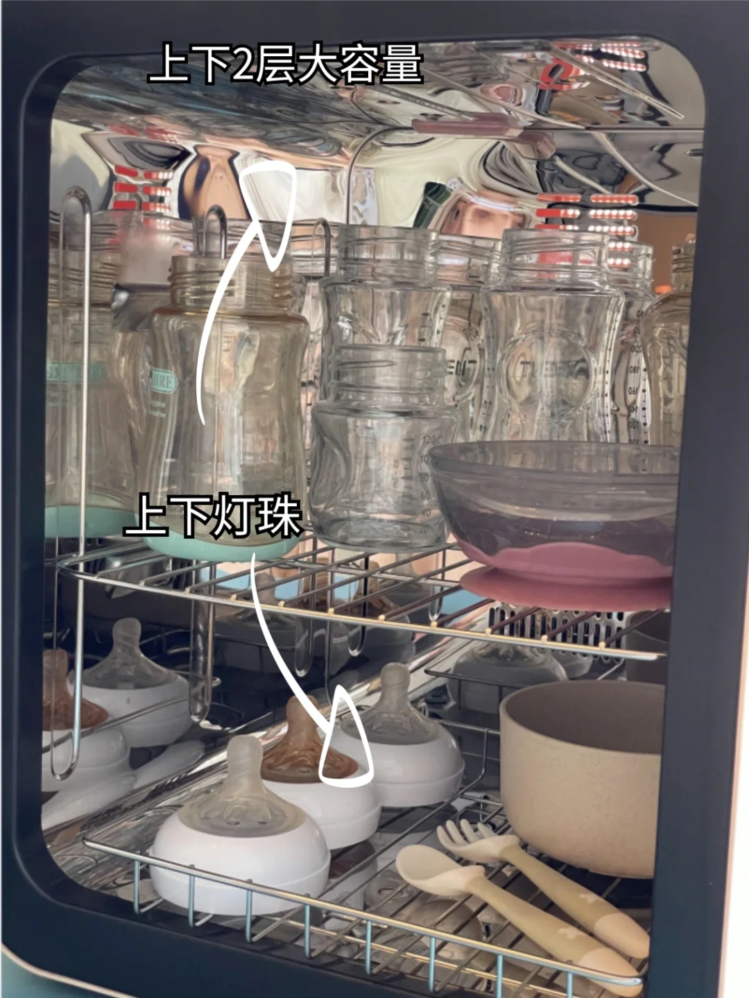 娃没出生时,自己入手了蒸汽消毒器,后来娃大了之后感觉容积太小使用麻烦。所以不得不更改一个婴儿消毒柜,吃过亏的我特意做了攻略才去挑选(具体可查看图4、5图片),我自己最后入的是大宇家的奶瓶紫外线婴儿消毒柜,22L大容量,上下两层无汞灯珠全包围式杀菌消毒物品,全自动烘干消毒保管,使用起来相当方便。以前那台蒸汽消毒锅不能自动保管,我每次都忘记去按。而且这种无汞的灯珠消毒奶瓶没有什么异味,使用起来放心多了。