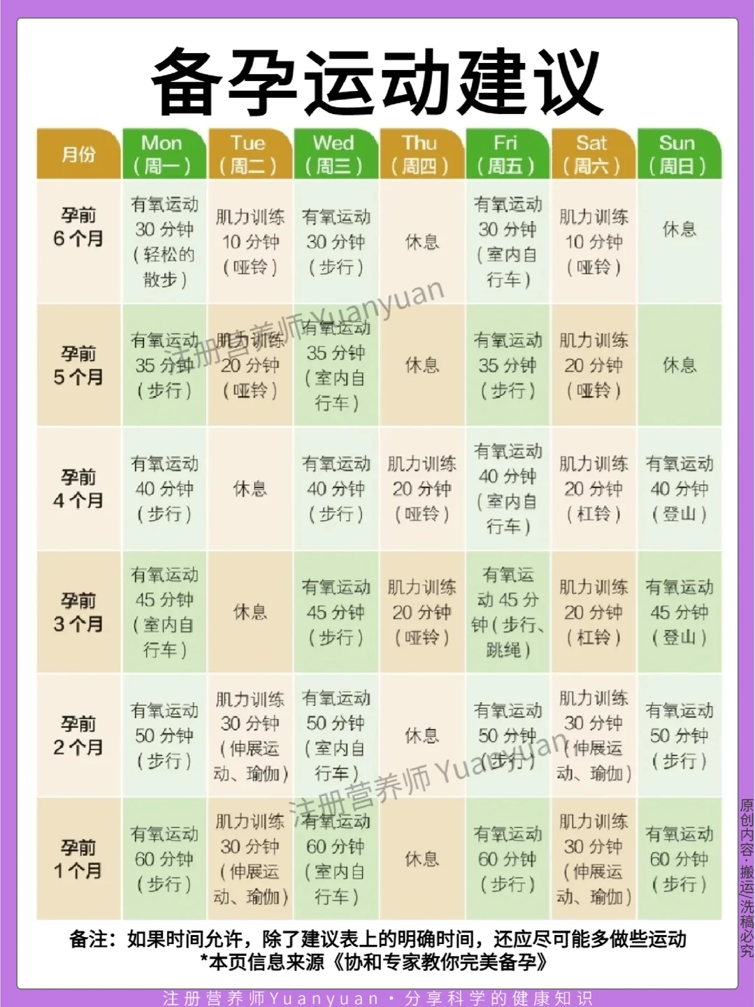 🔅当然,除了饮食和营养外,运动对备孕也很重要,姐妹们一定要拉着老公动起来,具体运动安排见图7