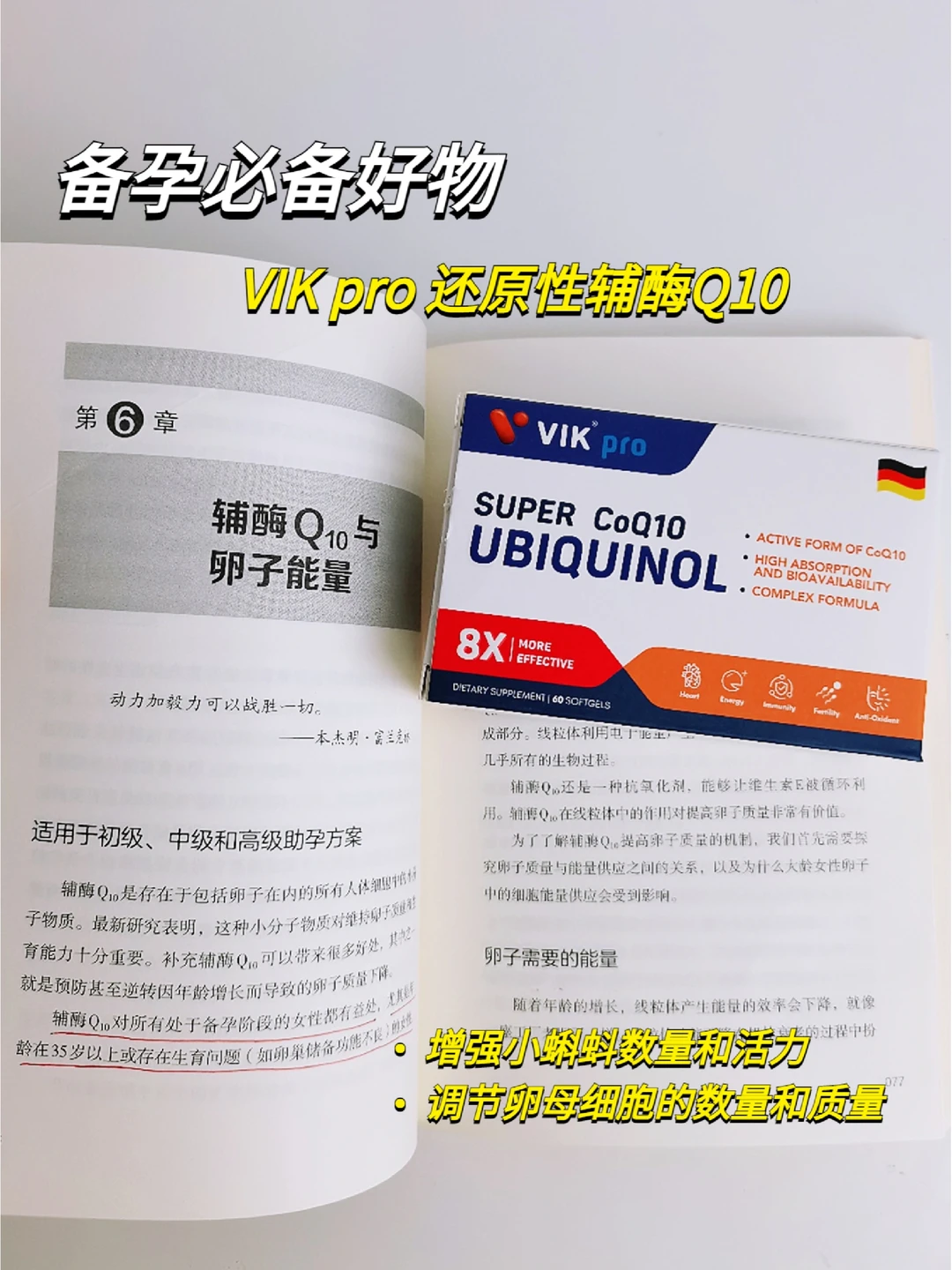 🎉🎉推荐VIKpro辅酶Q10给备孕的姐妹,每粒含还原性辅酶Q10 100mg,使用的是日本KANEKA公司的原料,生物利用率高,是氧化型Q10的8倍,还搭配20mgVE(可协助辅酶Q10发挥更大的作用✨)和60μg硒,K氧更强