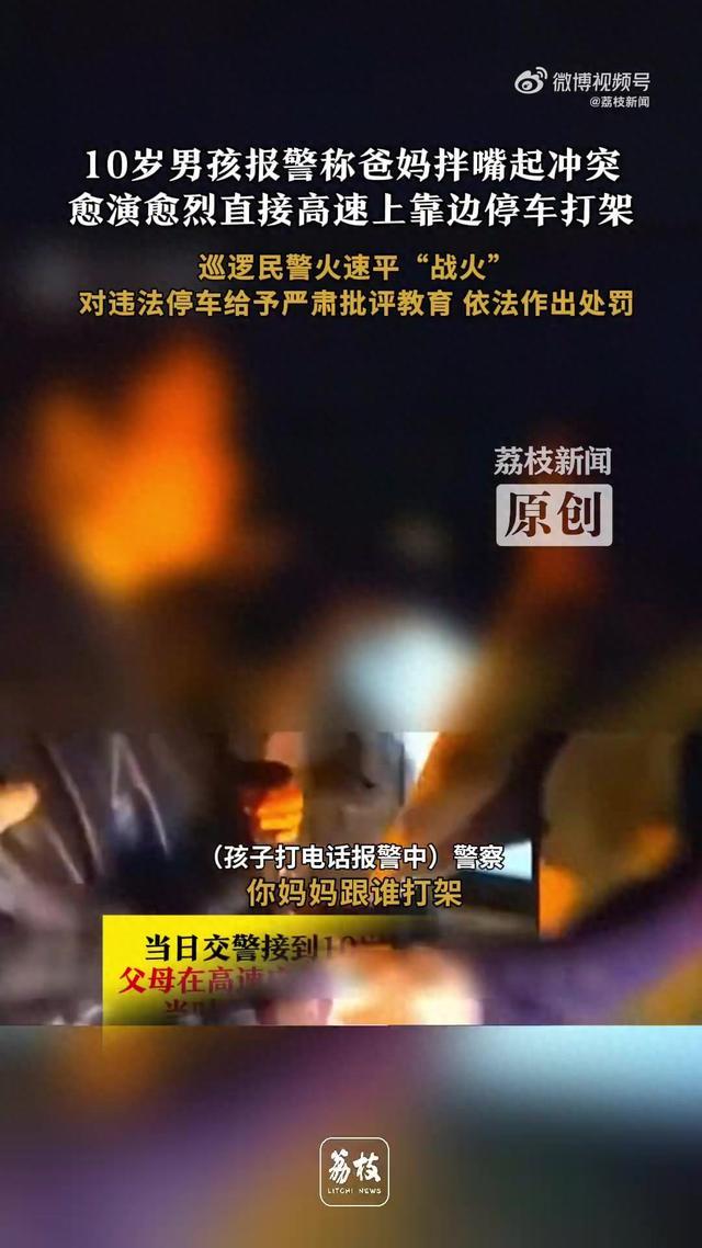 近日,京沪高速高邮段有对夫妻因琐事争吵,进而将车停在应急车道,不顾车流穿梭,扭打在一起。后座10岁大的孩子报警呼救。民警找到该私家车后设置了警示区域,将争吵的夫妻俩分开。