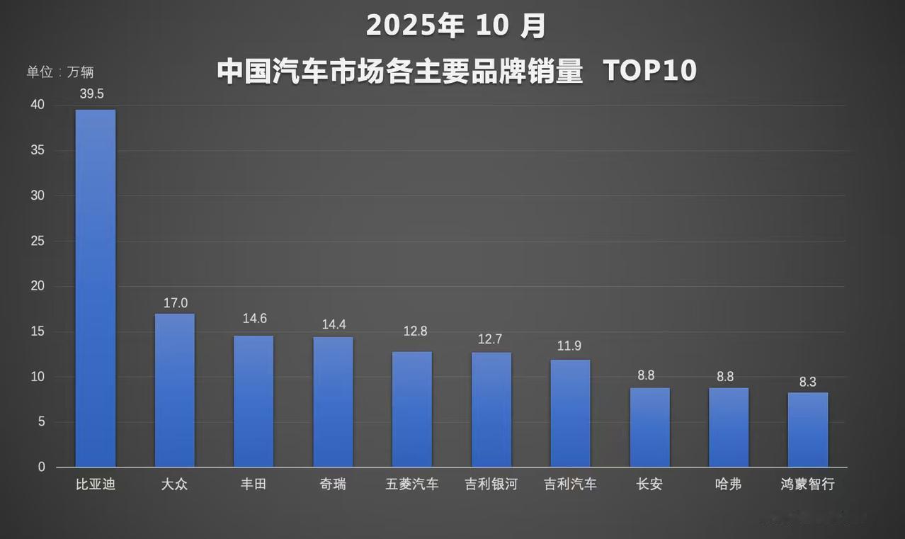 比亚迪在2024年1月至10月期间,累计销量达到370.19万辆,同比增长13.9%,完成全年销量目标的80%。10月单月销量达到44.17万辆,创下历史新高。数据显示,中国新能源汽车市场已迈入以新能源为主导的新阶段,10月新能源汽车新车销量占比首破50%,达到51.6%。在这一趋势下,比亚迪凭借领先的技术与产品布局,电动化布局持续提速,持续领跑新能源赛道。比亚迪的电动化战略持续提速,技术投入力度不断加大。今年前三季度,公司研发投入高达437.5亿元,同比增长31%,成为汽车行业的“研发之王”。以“天神之眼”辅助驾驶系统为例,该系统搭载车型销量已突破200万辆,日均生成的智能驾驶数据里程超过1.3亿公里,为智能驾驶技术的持续进化提供了有力支撑。在高端市场,比亚迪也取得显著突破。10月,方程豹品牌销量达31052辆,同比激增415%,成为自主高端品牌中的亮点;全新钛7在首个完整销售月销量突破2万辆,成交均价超过21万元,进一步巩固了比亚迪在中高端市场的地位。海外市场方面,比亚迪表现同样亮眼。10月,其乘用车及皮卡海外销量达83524辆,同比增长155.5%;1–10月累计出口突破78万辆,同比增长超130%。目前,比亚迪新能源汽车已覆盖全球117个国家和地区,在英国、巴西、法国、西班牙等多个市场占有率快速提升,全球化布局进入加速期。从技术研发到市场表现,从高端突破到全球扩张,比亚迪正以清晰的节奏推动新能源汽车产业的体系化升级,持续巩固其行业领先地位。比亚迪