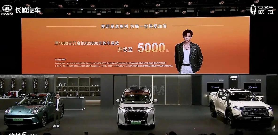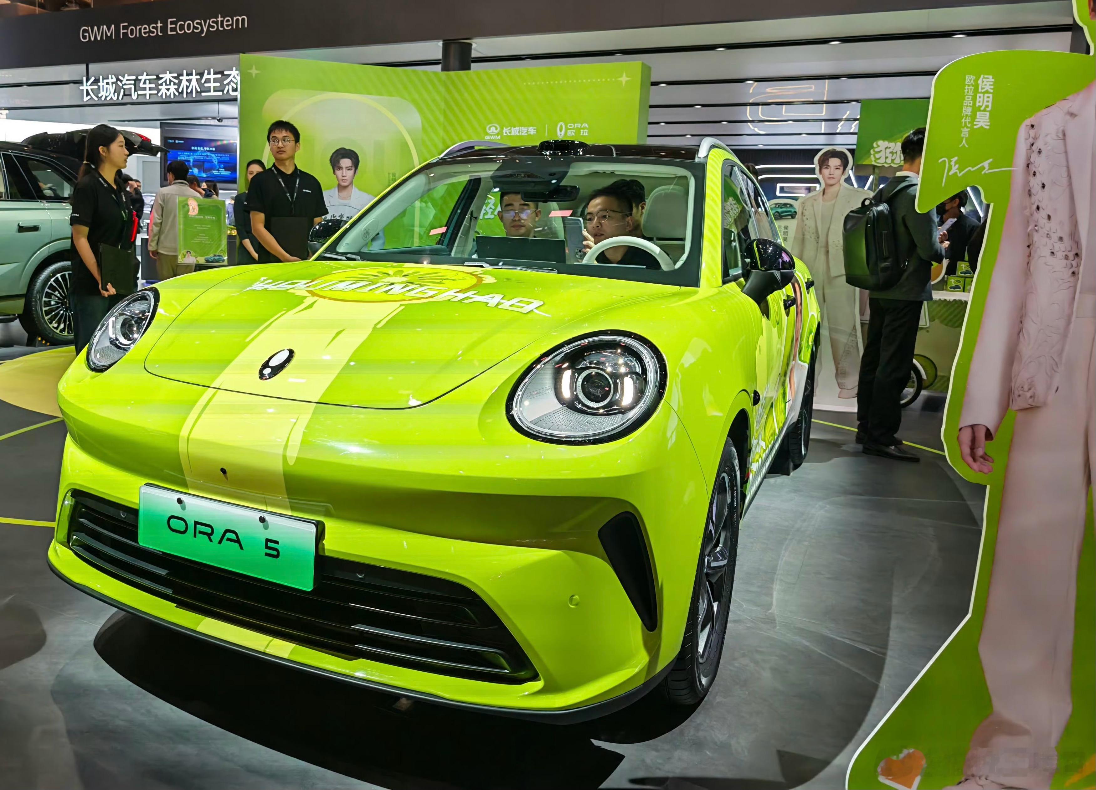 欧拉展台的主角就是长城欧拉5,车展上宣布了预售权益加码,从1000元抵3000元,变成了抵5000元,然后还送“塞纳灰”车漆和18英寸轮毂,之前订了车的用户也能享受权益升级,挺好。欧拉5这车还是挺适合年轻人的,“极光绿”的液态金属车漆颜色很好看,车内15.6英寸2.5K中控屏,另外辅助驾驶方面还有CP Ultra,如果买的是激光雷达版本车型可以享受500万级辅助驾驶保障,目前预售价10.98万起,正式售价肯定还会更便宜,感兴趣吗