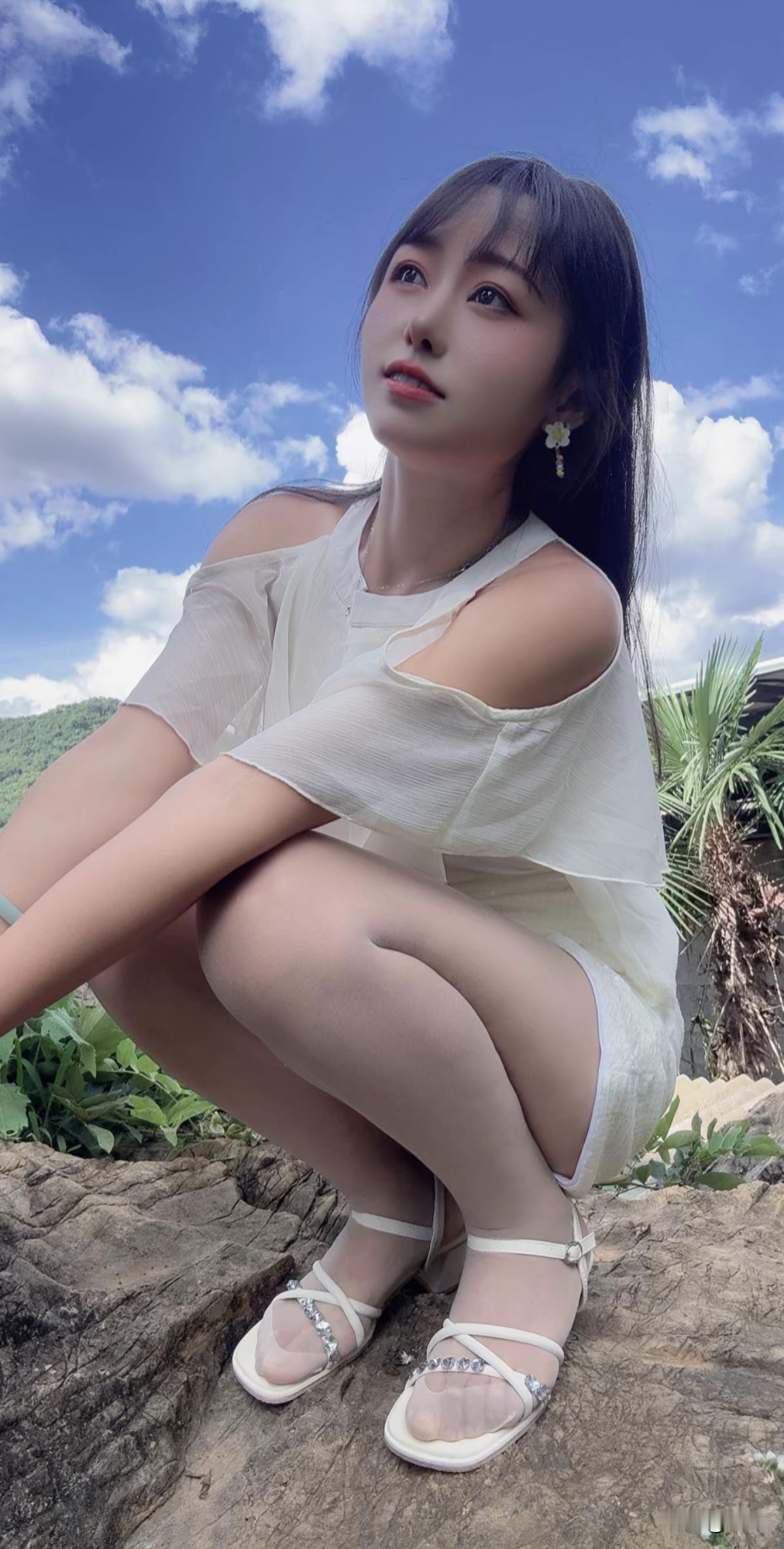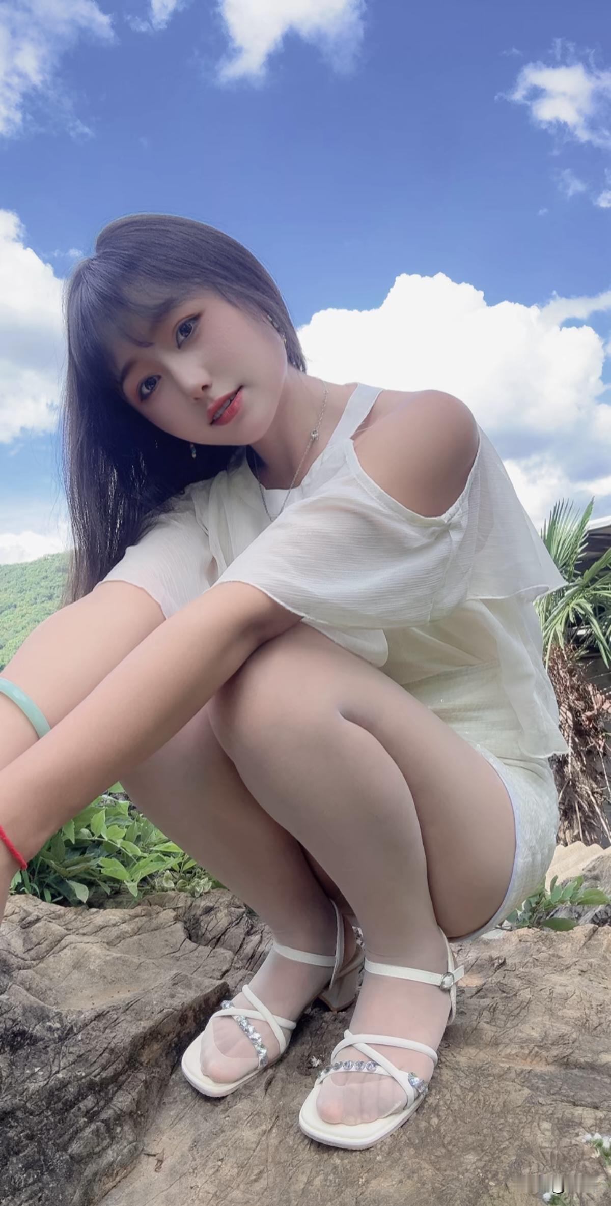 夏日甜美穿搭,浅黄色荷叶边上衣搭配白色短裙,清新可爱!🌞💕