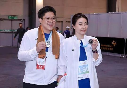 在渣打香港马拉松中,霍启刚与郭晶晶夫妻亮相参赛,获颁奖牌。霍启刚幸福感爆棚,郭晶