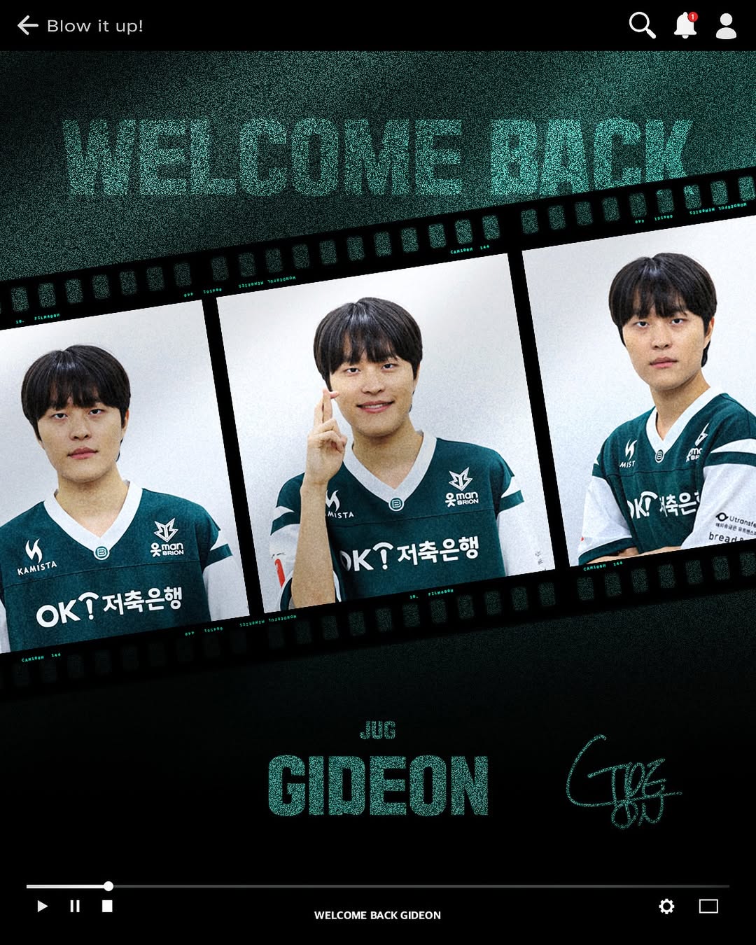 BRO为了展现更具凝聚力的队伍面貌,将在2026年继续与GIDEON选手携手同行。请大家多多期待擅长通过多样战术组织掌控比赛节奏的GIDEON选手。