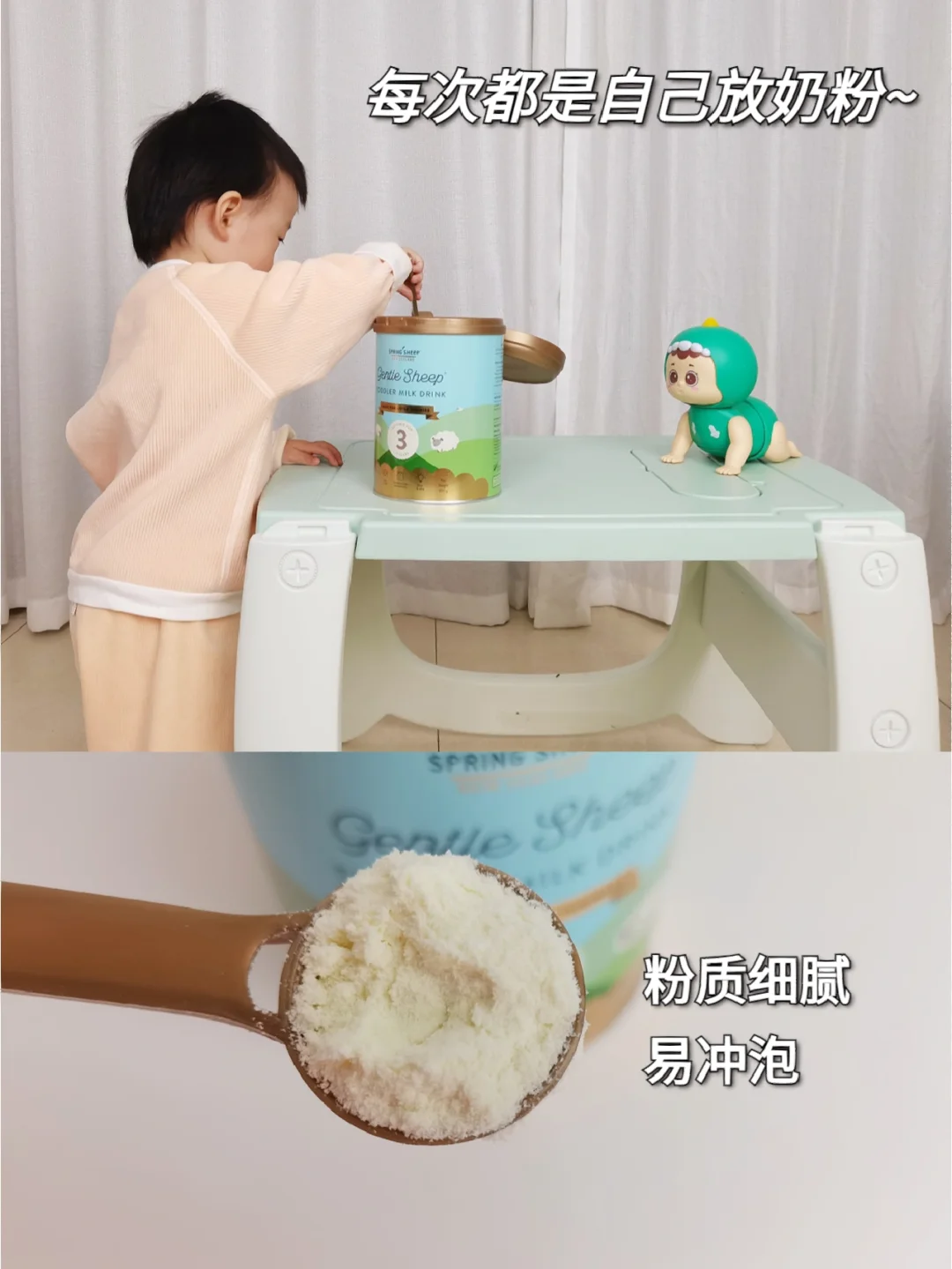 断奶重要的一环是选择宝宝愿意吃,呵护肚肚,能提供充足营养的奶粉,一款适合的奶粉能让断奶事半功倍。宝宝断奶有个适应期,这期间宝宝肚肚更娇嫩,经常出现小肚肚不舒服、便便不正常的情况。所以选择奶粉的时候我就着重寻找亲和肚肚的奶粉,让👶在好吸收的同时,也避免增加肠胃负担,最后选择了Spring Sheep 绵羊奶粉。