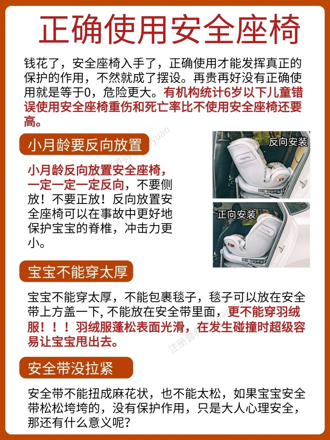 ‼️入手了安全座椅,正确使用很重要。错误的使用方式会给孩子带来二次伤害,危害更严重。常见的错误使用有以下几点,详见图2